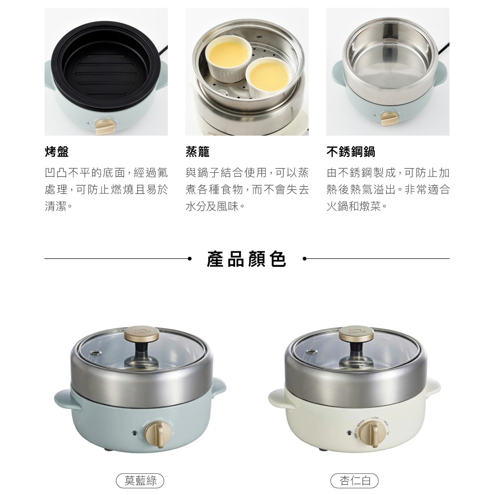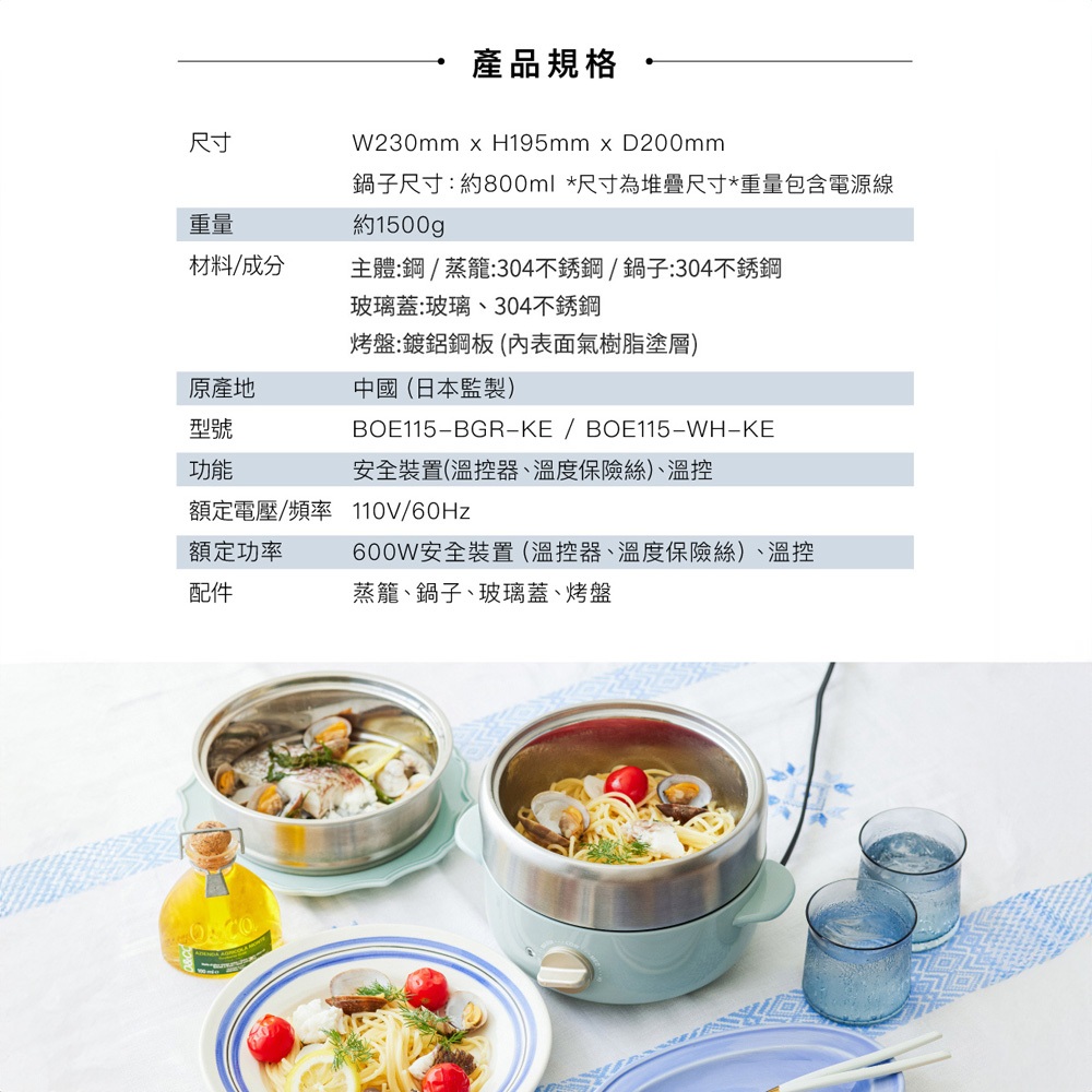 【日本BRUNO】獨享美食鍋 BOE115|一人食必備|煮・煎・蒸・炊 四合一|800ml容量|多功能料理鍋杏仁白|莫藍綠Multi-function CookersBruno官方旗艦店