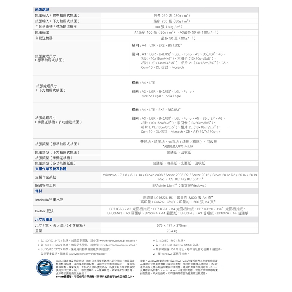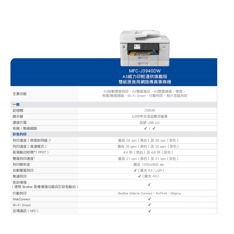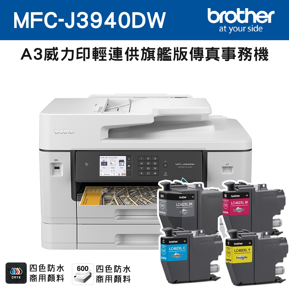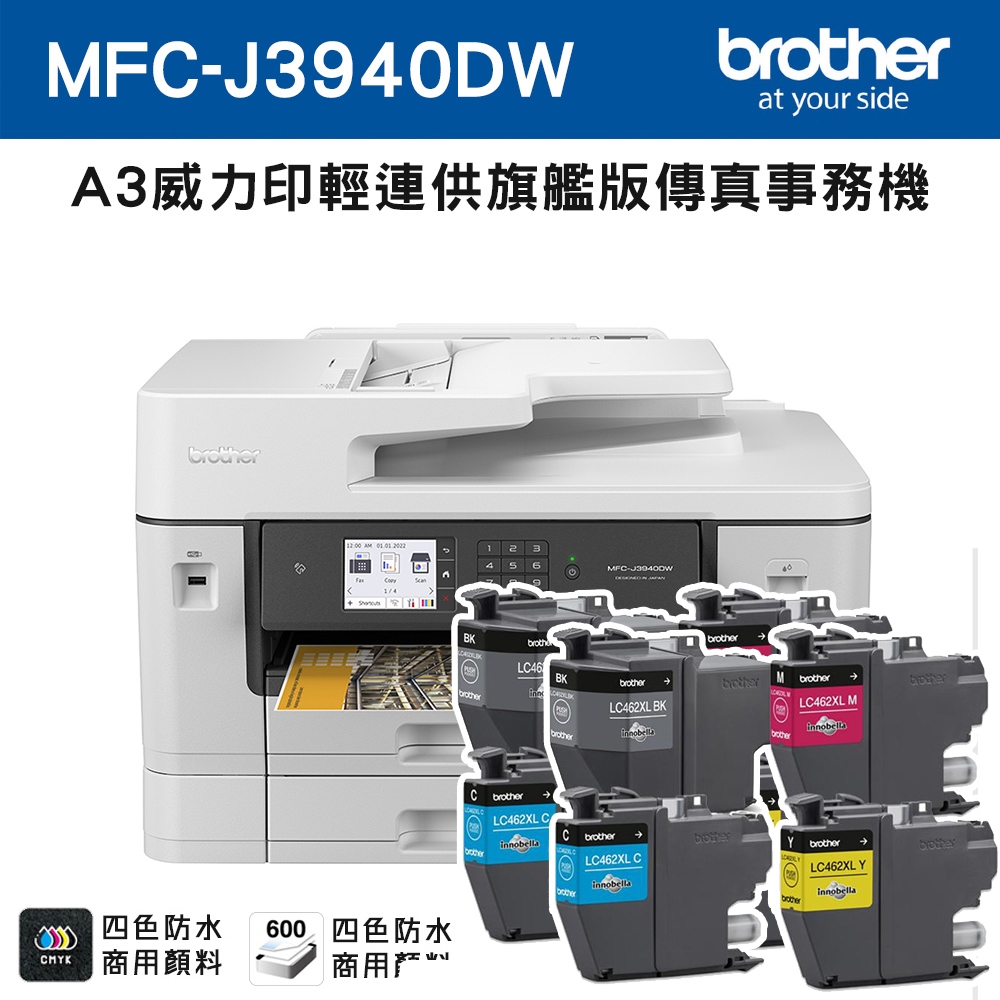 【機+2組四色墨水】brother MFC-J3940DW A3彩色噴墨傳真事務機J3940+LC462XL四色X2