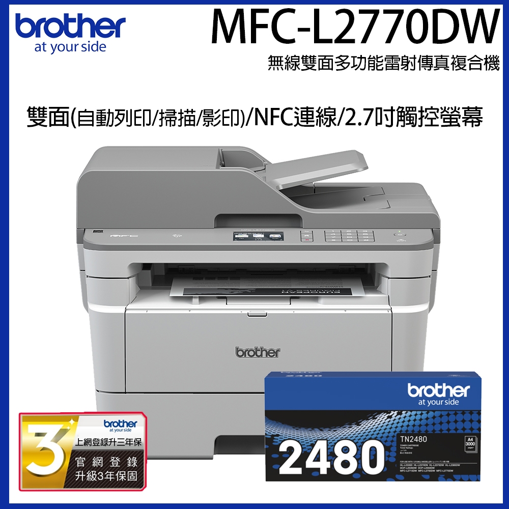 【機+原廠碳X1_優惠組】brother MFC-L2770DW黑白WIFI雷射複合機 (2770DW+TN2480)不加購只要機器_內含原廠隨機碳粉_保固一|機+碳粉TN2480X1_優惠組_保固三Printers, Scanners & Photocopy Machinesbrother兄弟旗艦館|特約經銷