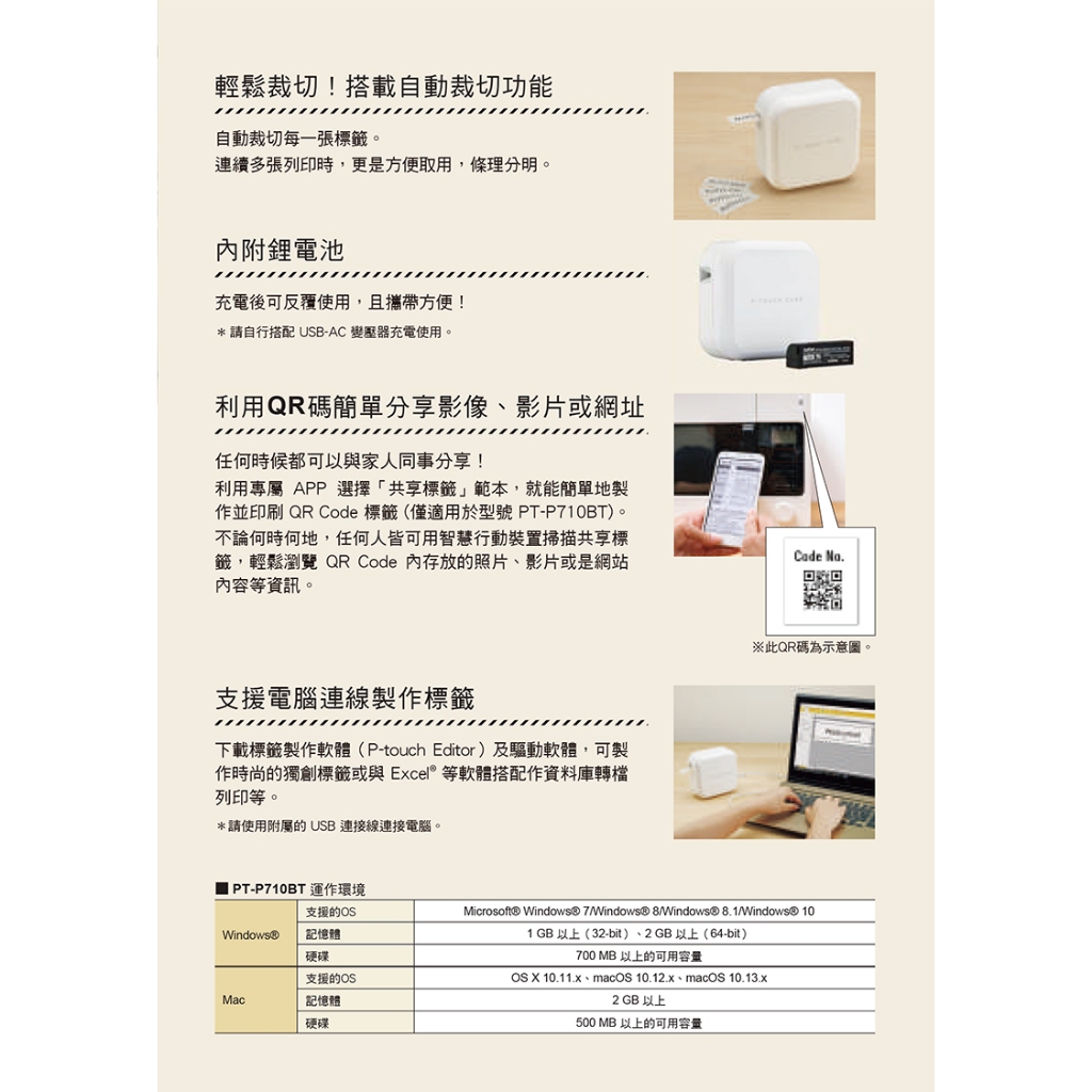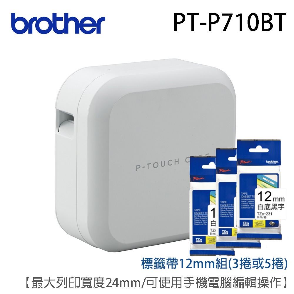 【機+標籤帶組合】brother PT-P710BT 手機/電腦標籤機/USB連線 _保固五年機+12mmx3捲(白底黑字TZe231|機+12mmx5捲(白底黑字TZe231Label Printersbrother兄弟旗艦館|特約經銷
