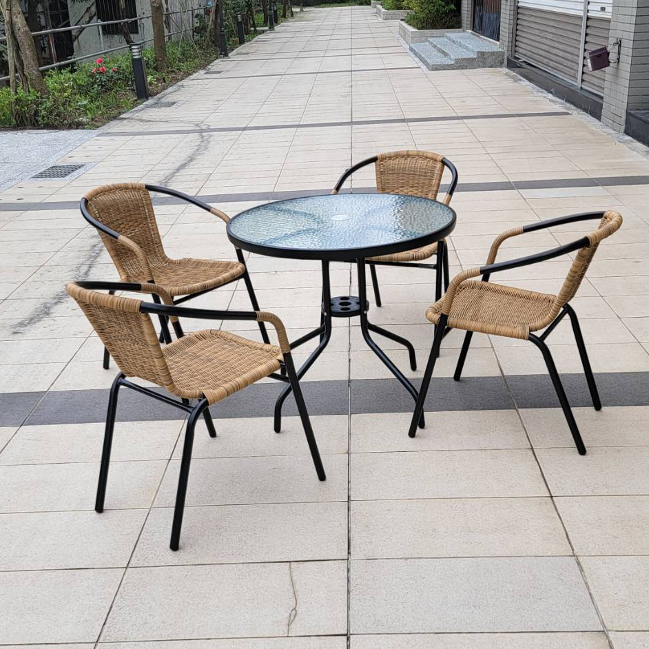 【BROTHER兄弟牌】PE休閒戶外藤椅 (4張椅組)雙色藤色+綠色/黑色鐵管綠色管|黑色管Benches, Chairs & StoolsBrothersports兄弟牌