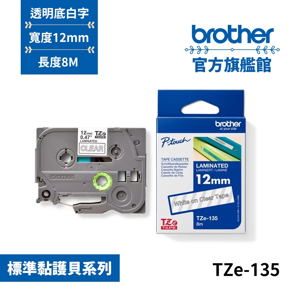 BROTHER TZe-135 原廠標準黏性護貝標籤帶 12mm 透明底白字 單捲 多捲優惠 公司貨 現貨TZe-135 (12mm 透明底白字)OthersBROTHER 官方旗艦館
