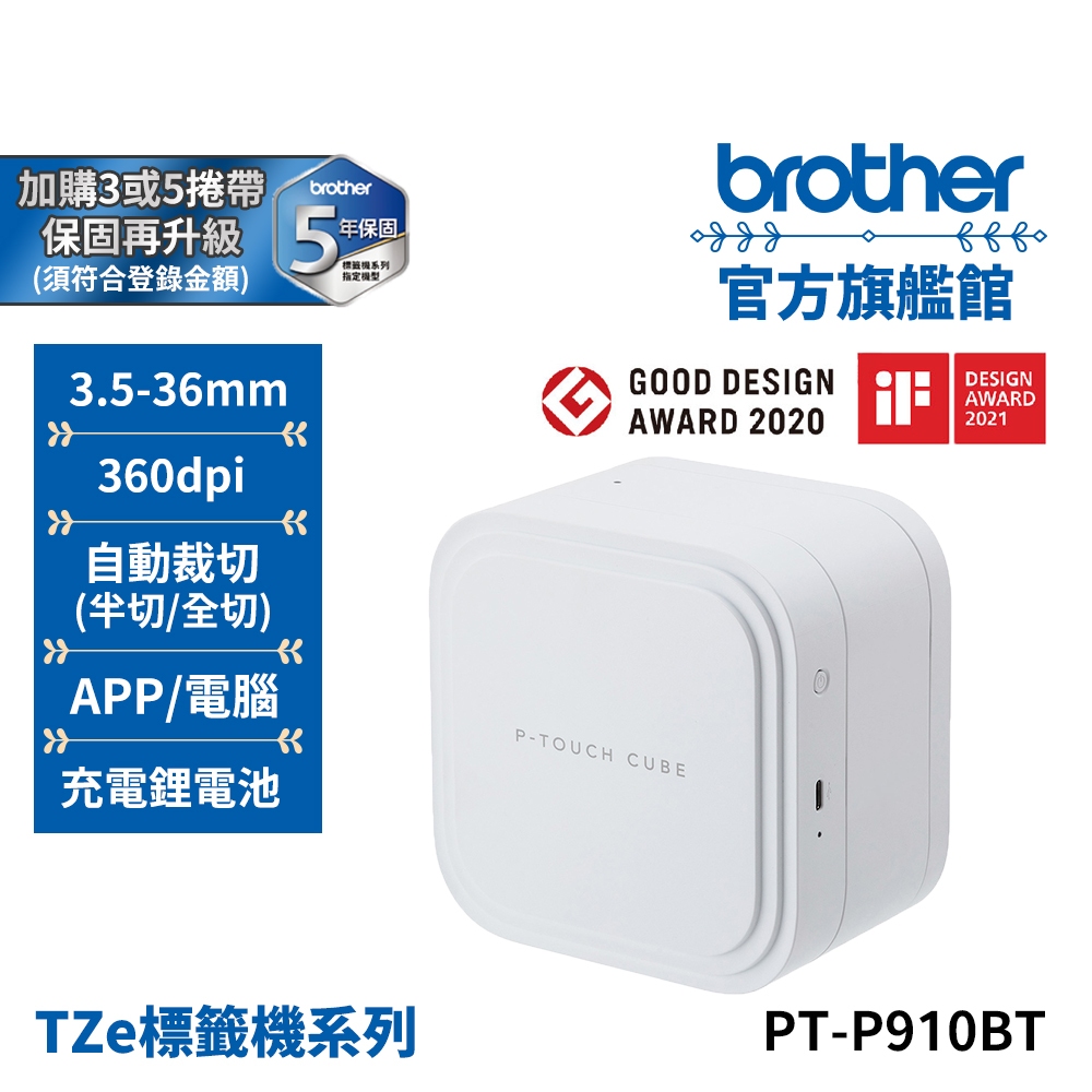 BROTHER PT-P910BT 智慧型手機/電腦兩用旗艦藍芽玩美標籤機 公司貨 現貨PT-P910BT(原廠一年保固)OthersBROTHER 官方旗艦館