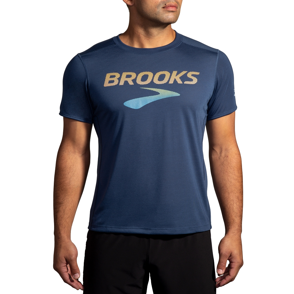 【BROOKS】男 Distance 短袖上衣 3.0_板岩藍/BR LOGO(211502433)XL|XS|S|M|LT-shirtsBrooks官方商城