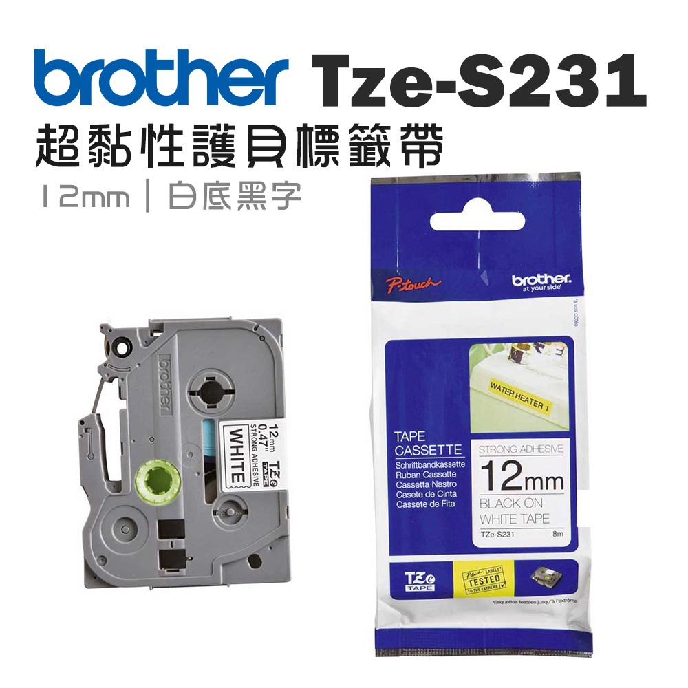 BROTHER TZe-S231 原廠超黏性護貝標籤帶 12mm 白底黑字 單捲 多捲優惠 公司貨TZe-S231(單捲)Thermal Paper & Continuous PaperBROTHER 官方旗艦館