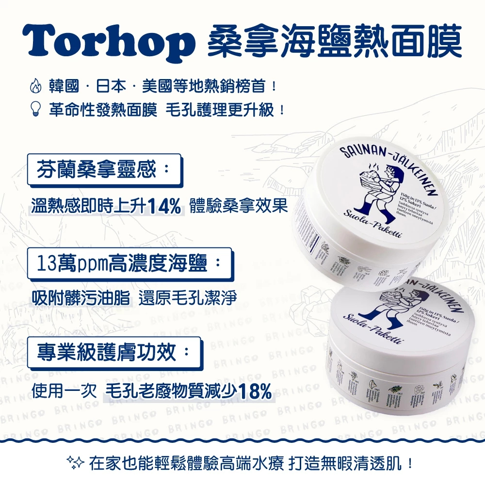 【Torhop】桑拿海鹽熱面膜 面膜 毛孔清潔 韓系桑拿護理 家用水療面膜 肌膚調理 肌膚清潔桑拿海鹽熱面膜 90g|套組🔥桑拿海鹽熱面膜(90g+7g)|桑拿海鹽熱面膜 150g|⭐星光睡眠面膜 60gFace Mask & PacksBRINGO 商城旗艦館