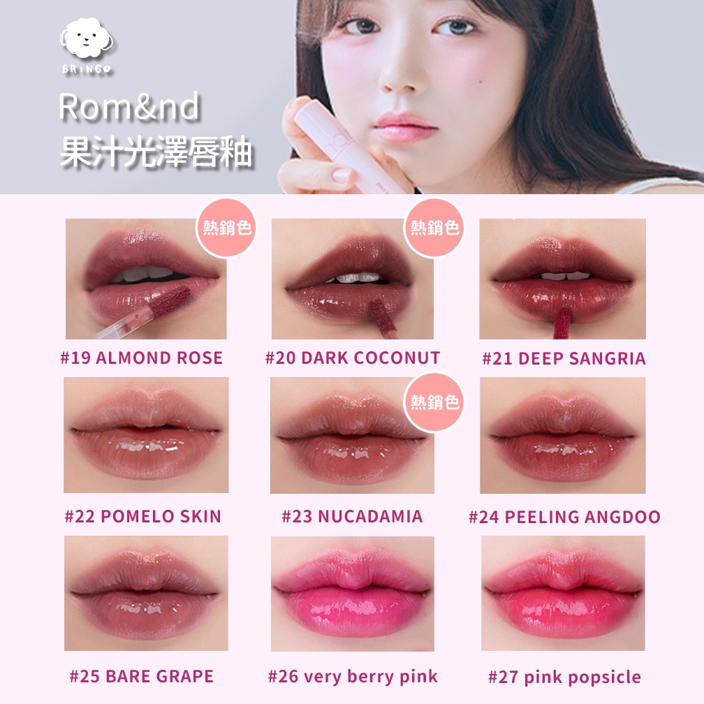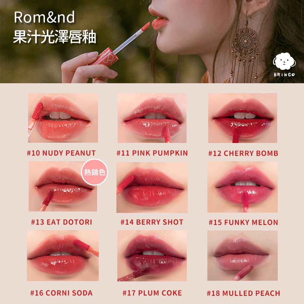【rom&nd】果汁唇釉 2.0 3.5g 果凍唇釉 romand 水光唇釉 唇釉07❤︎櫻桃栗子|08❤︎粉紅南瓜|11❤︎木瓜醬醬|13❤︎吃橡子|23❤︎蜜汁桃桃|24❤︎橘子氣泡水|21❤︎玫瑰紅提|02❤︎胡桃果仁|04❤︎無花果|10❤︎溫軟杏米|15❤︎無花果奶茶|17❤︎深諳椰果|19❤︎夏日香氣|03❤︎蜜光葡萄|05❤︎紅棗|06❤︎剝落櫻桃|09❤︎滿糖蜜桃|12❤︎蘋果暗紅棕|14❤︎杏仁玫瑰|01❤︎柚子皮|16❤︎梅子可樂|20❤︎無花果棗汁|22❤︎香濃榛果|🆕29❤︎時令蜜果|🆕26❤︎仙境秘桃|🆕30❤︎糖漬甘栗|🆕28❤︎淡雪草莓|🆕27❤︎蜜露甜瓜LipsBRINGO 商城旗艦館