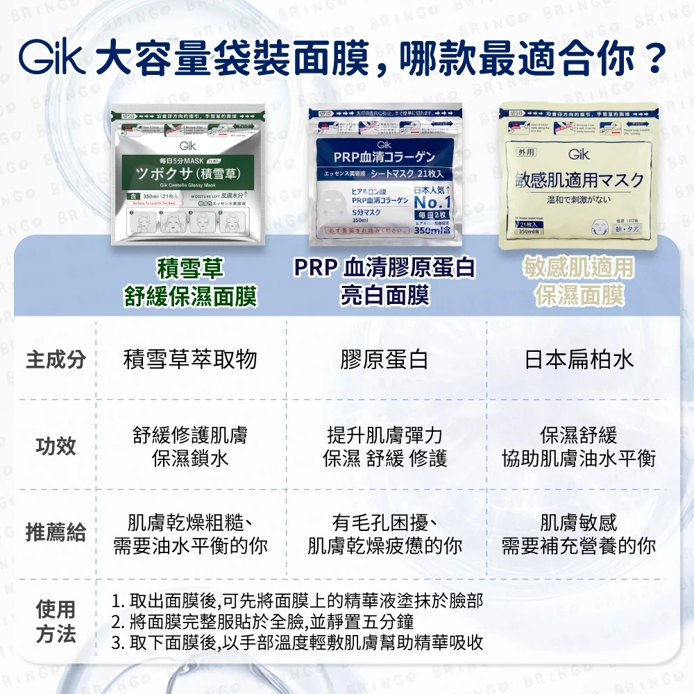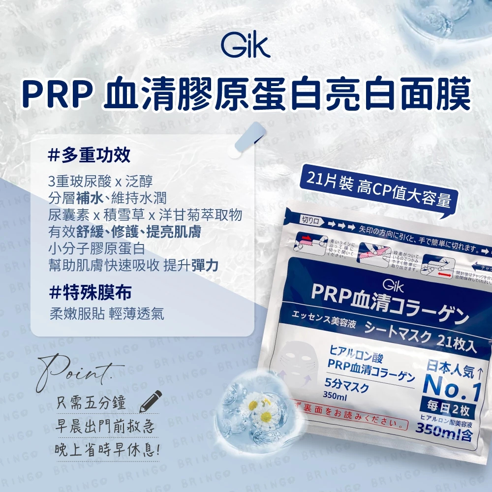 【Gik】PRP 血清膠原蛋白亮白面膜 玻尿酸 補水保濕 急救保濕 三隻羊 七老闆敏感肌適用高保濕面膜💦|PRP 血清膠原蛋白亮白面膜|積雪草膠原蛋白面膜Face Mask & PacksBRINGO 商城旗艦館