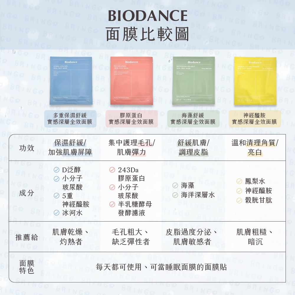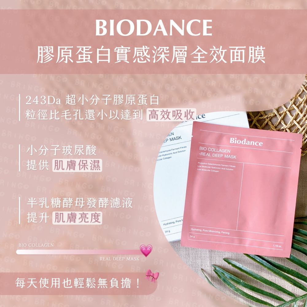 【Biodance】玻尿酸保濕面膜 膠原蛋白面膜 面膜貼 睡眠面膜 玻尿酸 保濕 膠原蛋白海藻舒緩實感深層全效面膜(綠)|神經醯胺實感深層全效面膜(黃)|膠原蛋白面膜(粉色)|玻尿酸保濕面膜(藍色)Face Mask & PacksBRINGO 商城旗艦館