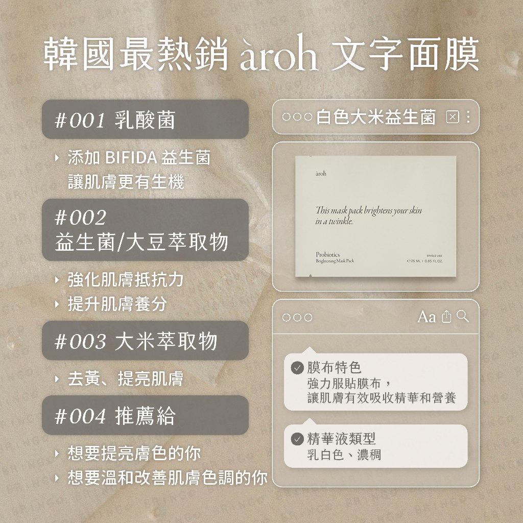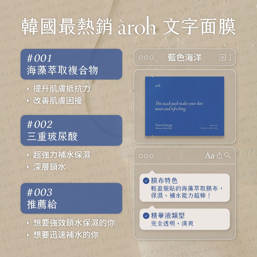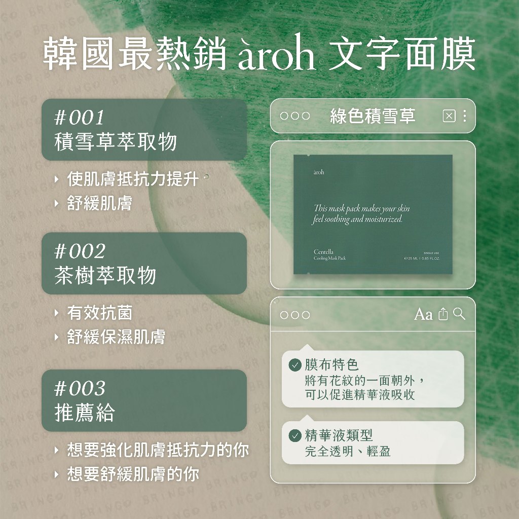 【Aroh】 韓國熱銷 積雪草面膜 冰敷面膜 提亮舒緩面膜 保濕 提亮 面膜新包裝✨白色🤍大米 提亮|新包裝✨藍色💙海洋 保濕|新包裝✨綠色💚積雪草 舒緩Face Mask & PacksBRINGO 商城旗艦館