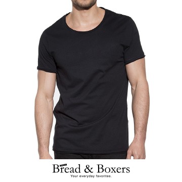 Bread & Boxers relaxed 有機棉不收邊鬆身素T(黑色) 短袖 短t 素t 素面 圓領 鬆身XS|S|M|L|XLT-Shirtsbread & boxers 台灣官方旗艦店