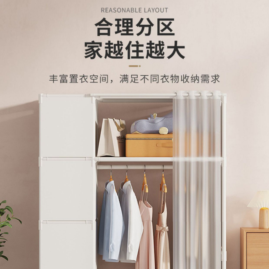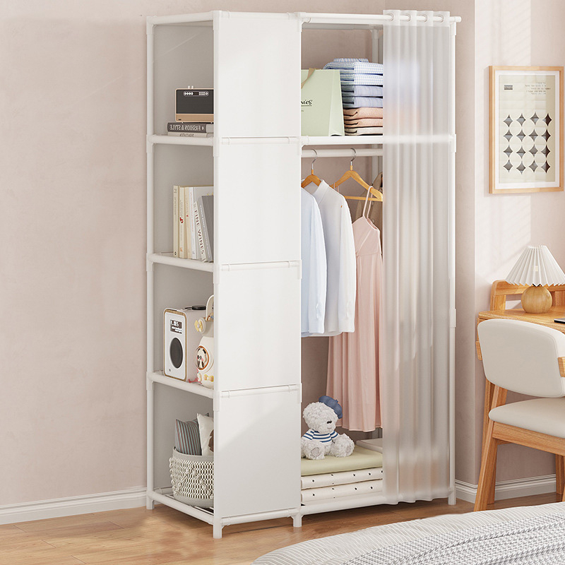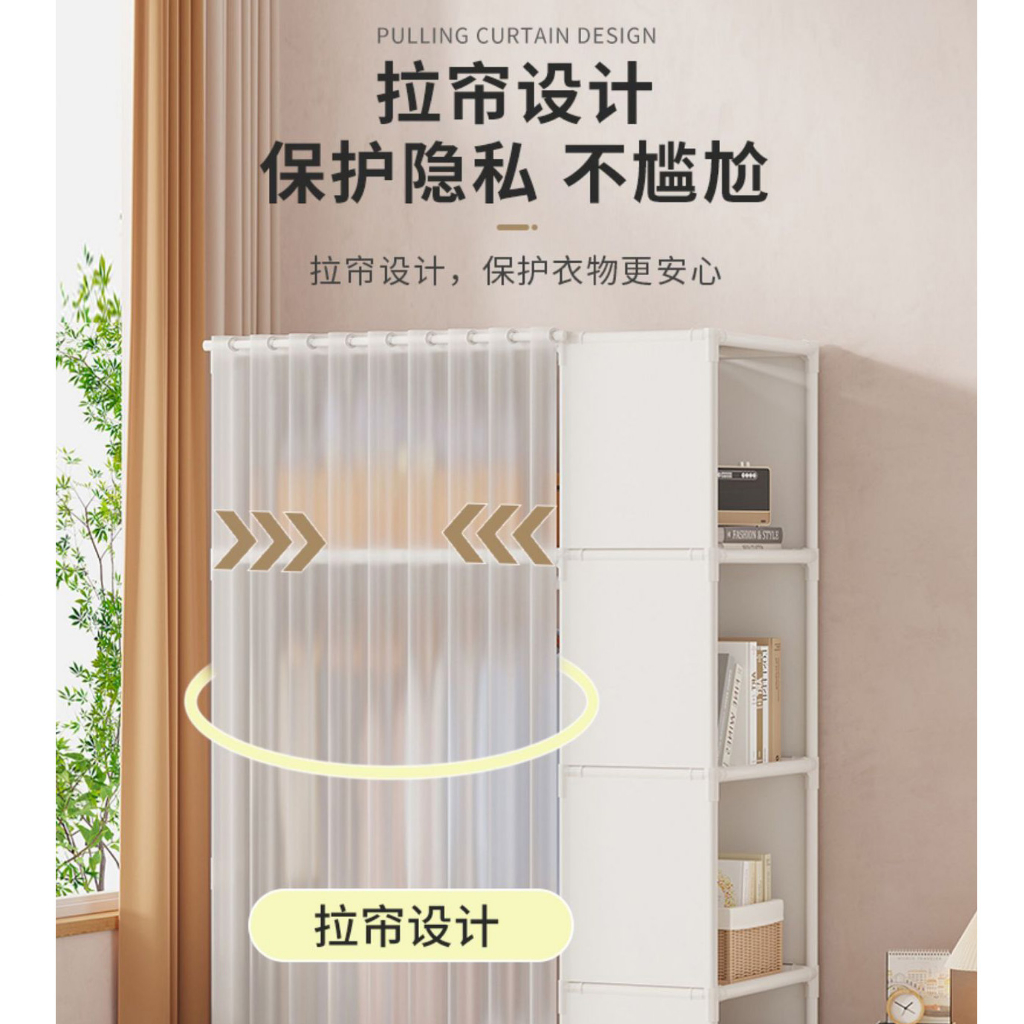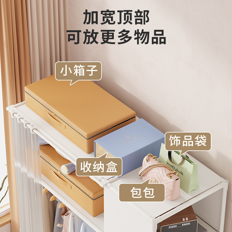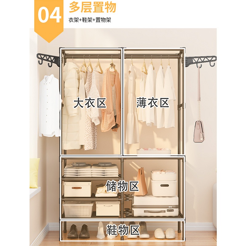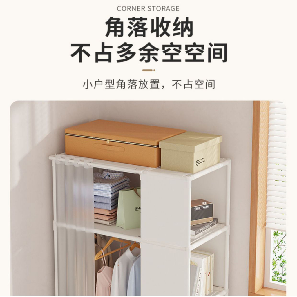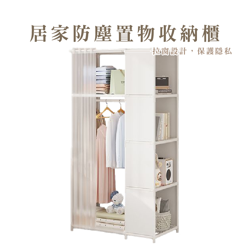 簡約臥室落地式掛衣架 鐵藝衣櫃 簡易家用防塵收納衣帽架 置物帶簾/開放式衣櫥架帶簾/雙層衣帽架櫃_HA390SJ衣櫥_白(中號)|SJ衣櫥_白(大號) -只能宅配WardrobesFS生活品專賣