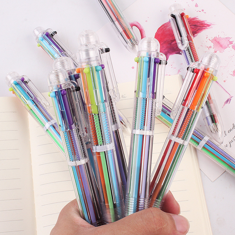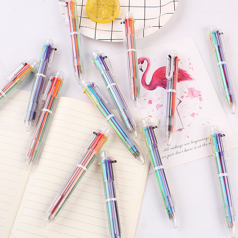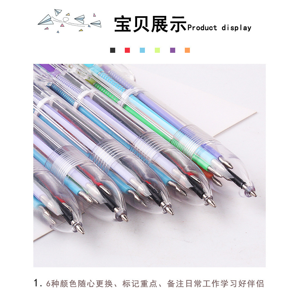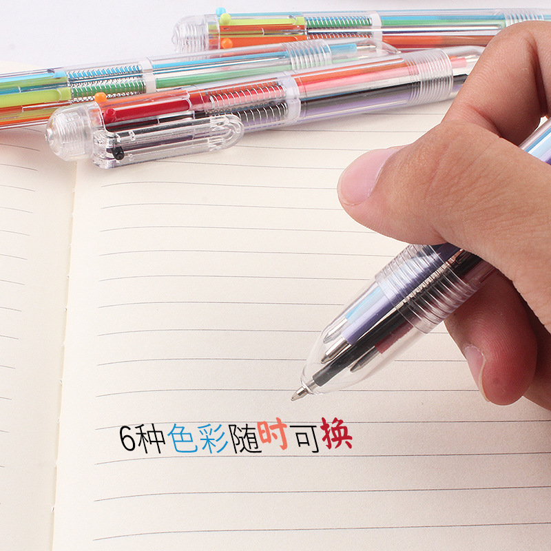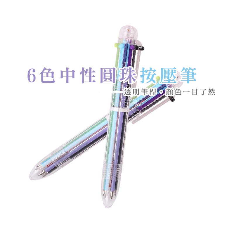 繽紛6色原子筆 0.5mm圓珠彩色筆 中性塗鴉標記筆 0.5m原子筆 文具用品 多功能筆 多色筆_B761六色按壓圓珠筆Pens & InksFS生活品專賣