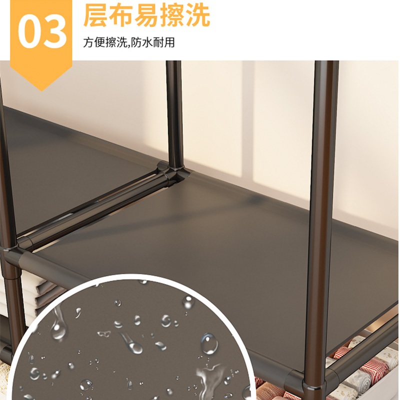 簡約臥室落地式掛衣架 鐵藝衣櫃 簡易家用防塵收納衣帽架 置物帶簾/開放式衣櫥架帶簾/雙層衣帽架櫃_HA390