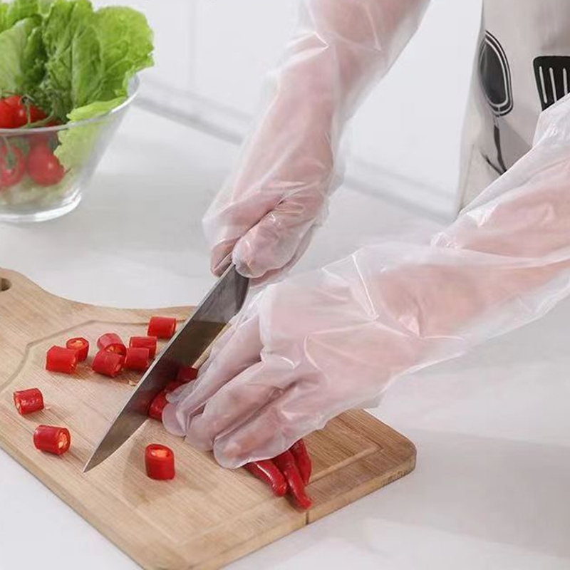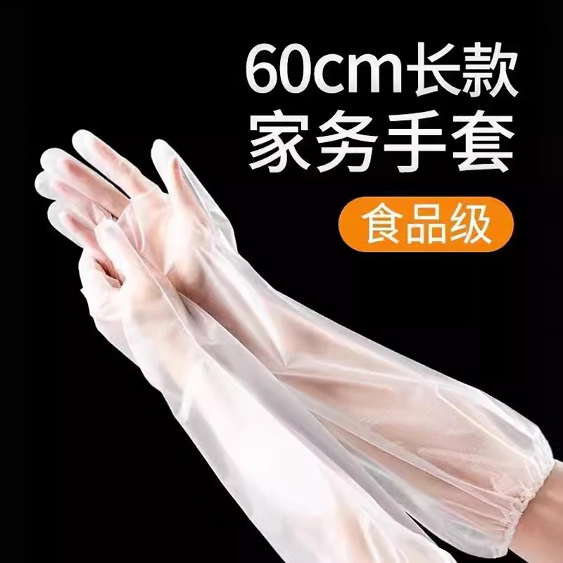 10入裝 加長升級款 束口手套 一次性長臂手套 護臂手套 防水防油 束口防滑手套 廚房清潔 廚房清潔手套 防水_B80460cm加長手套(10支)Aprons & Kitchen GlovesFS生活品專賣