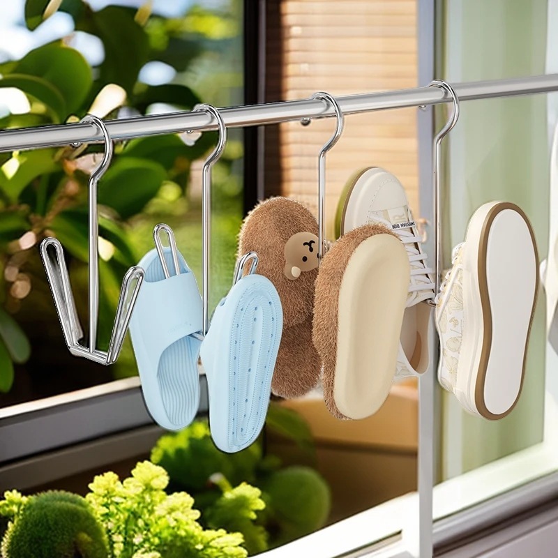 不鏽鋼晒鞋架 晾鞋架 陽台 曬鞋神器 家用晾掛鞋鉤 掛鞋架 鞋勾 鞋掛 不鏽鋼掛鞋神器 曬鞋架_B330鞋_浸塑(W型)|鞋_不鏽鋼(W型)HooksFS生活品專賣
