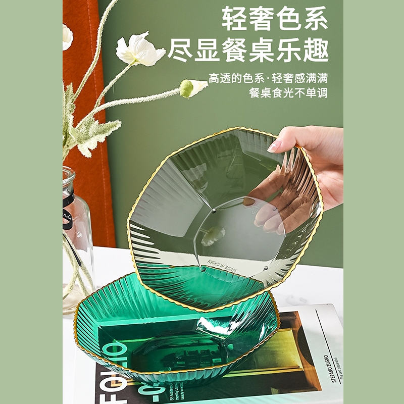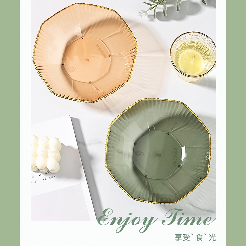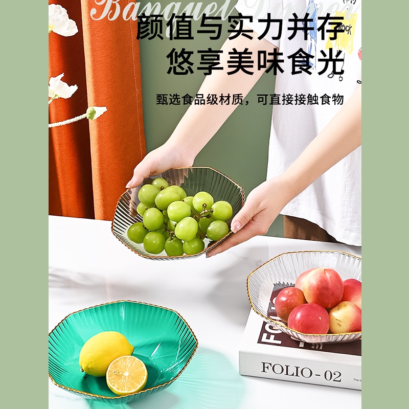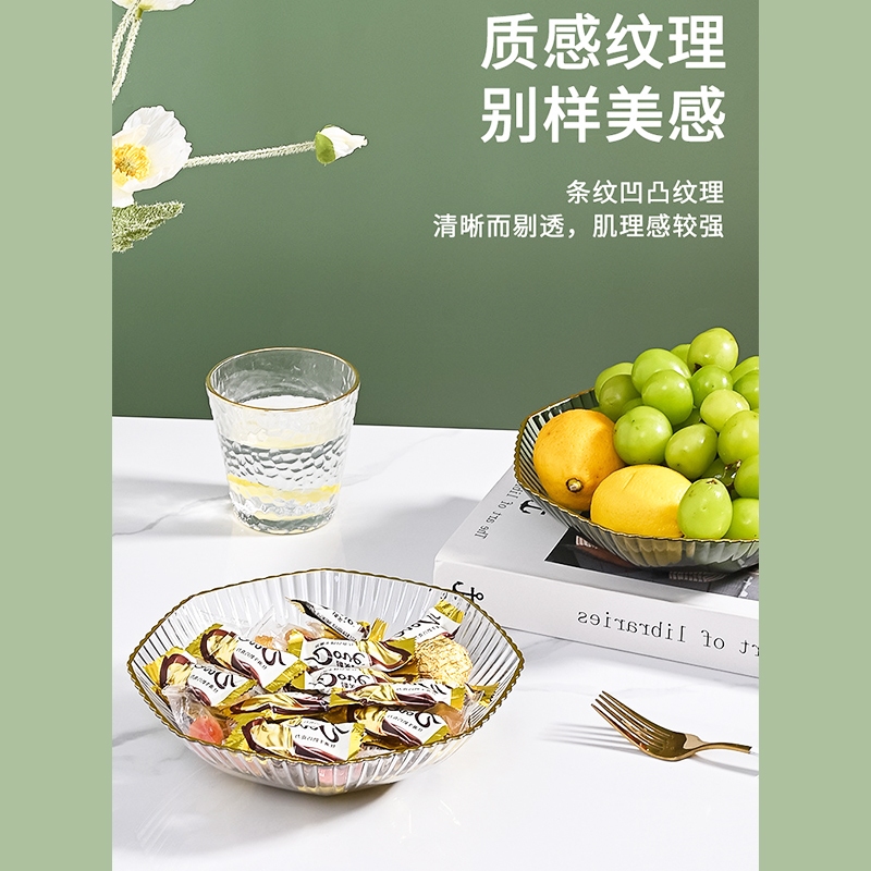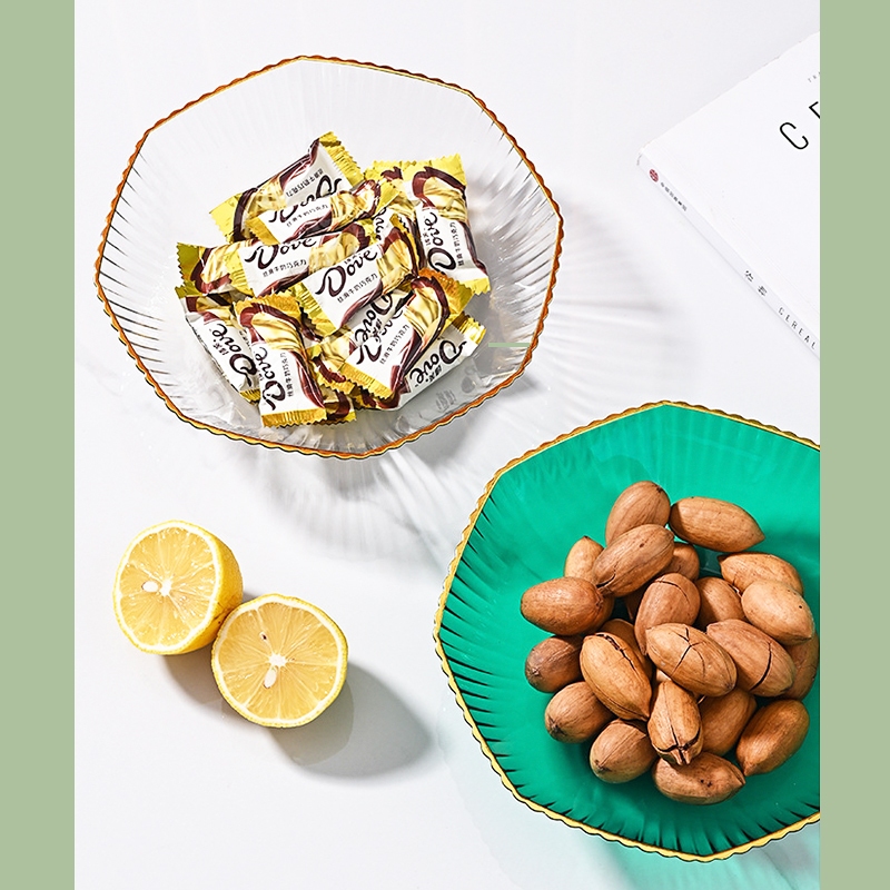 透明水果盤 水果盤 果盤 擺放盤 零食盤 北歐水果盤 水果收納籃 水晶盤 客廳果盤 水果收納_DH137花邊形-顏色隨機PlatesFS生活品專賣
