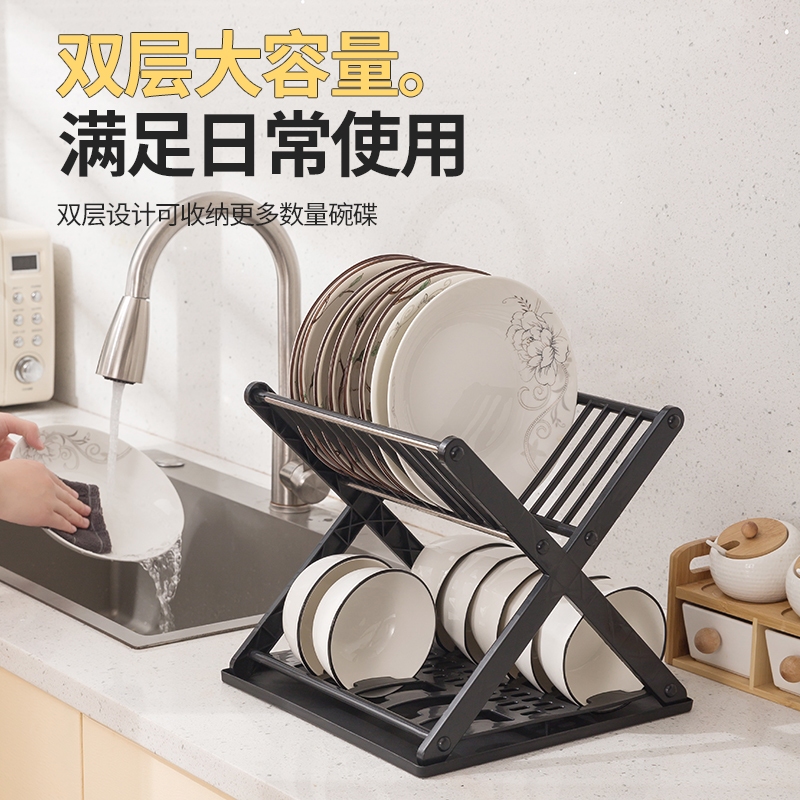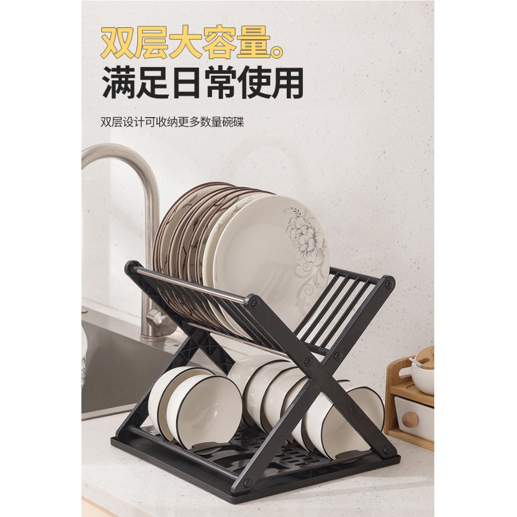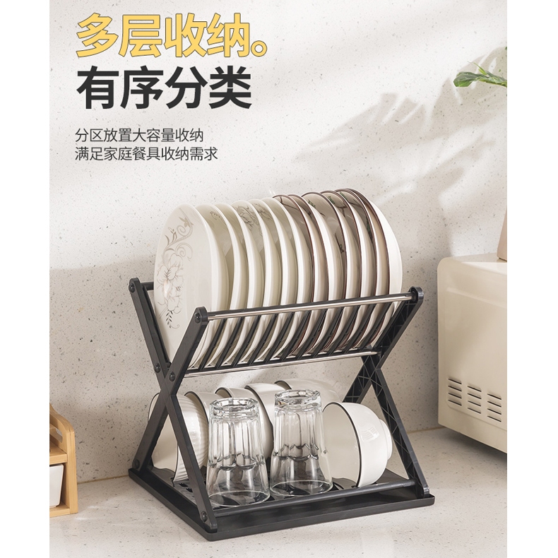 雙層瀝水架 碗碟收納架 碗盤瀝水架 廚房置物架 台面碗架 筷架 碗筷收納【HA007】X型碗盤架_白|X型碗盤架_黑Kitchen RacksFS生活品專賣
