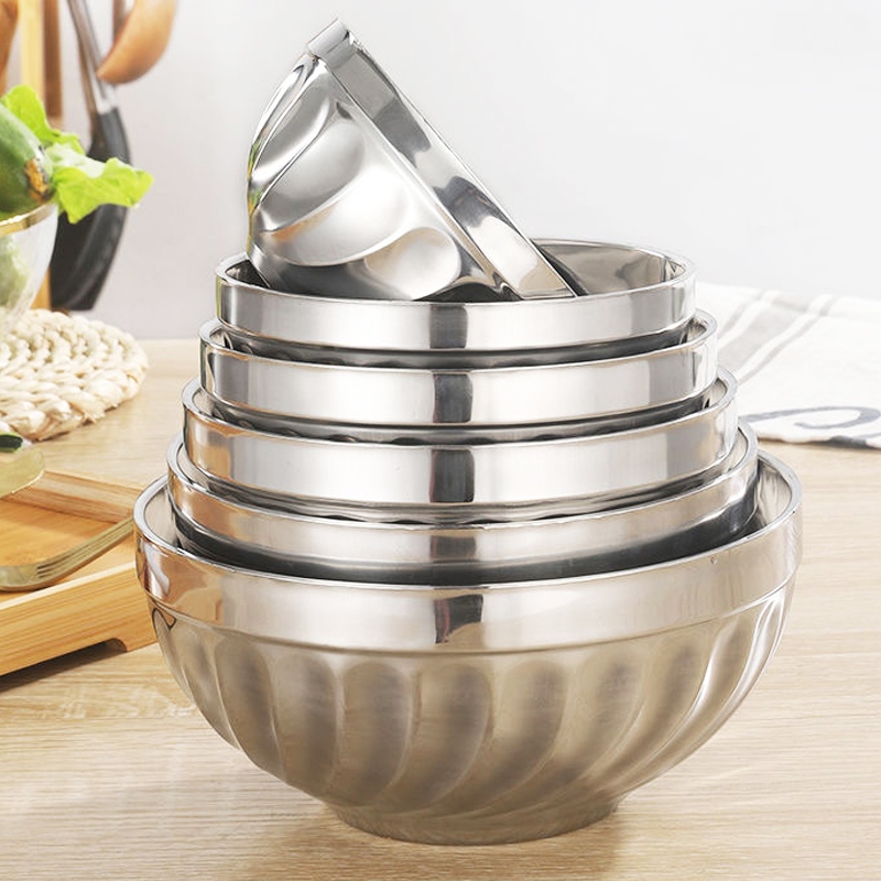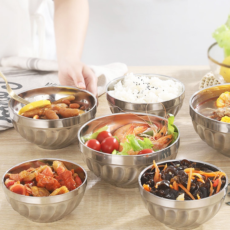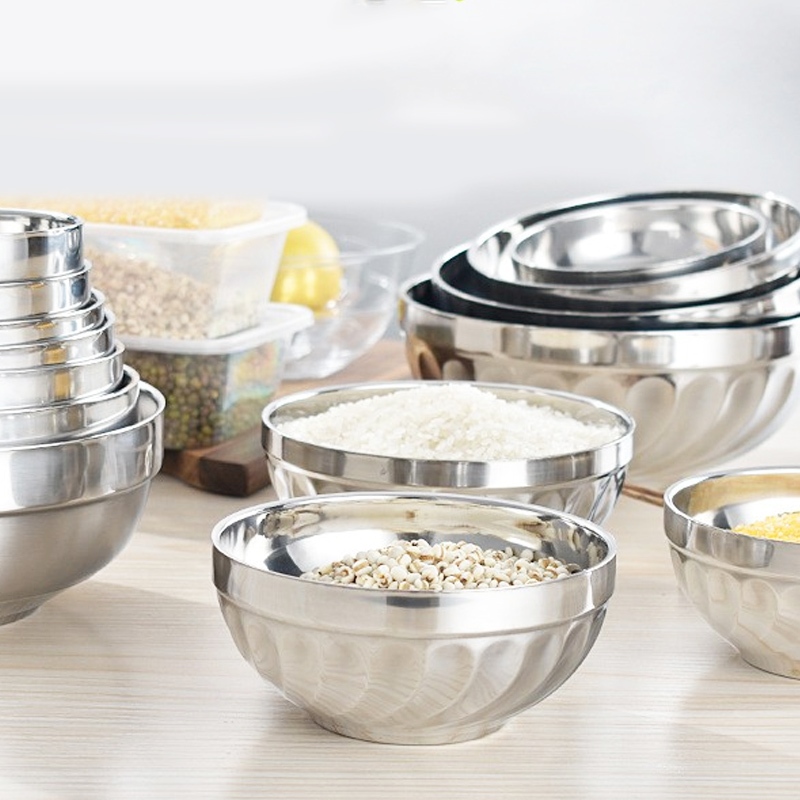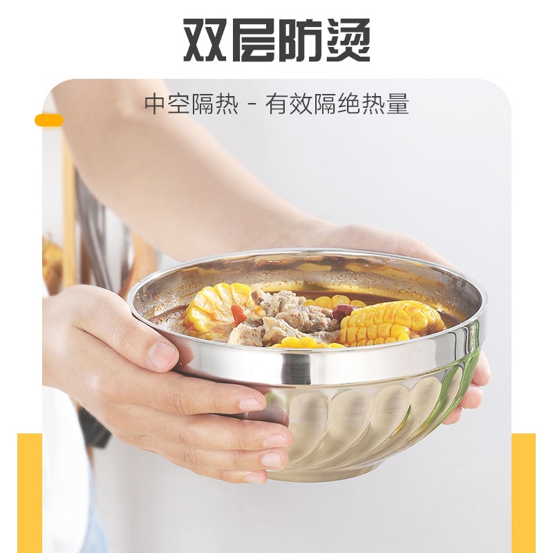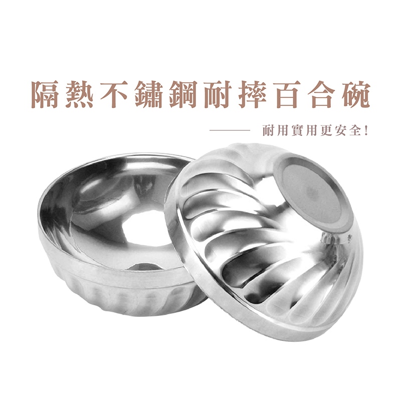 不鏽鋼雙層防燙碗 不鏽鋼碗 防燙碗 兒童碗 廚房湯 飯碗 防滑碗 防摔碗 餐具 鐵碗 雙層碗_DH150百合碗_20cm(大)|百合碗_11.5cmBowlsFS生活品專賣