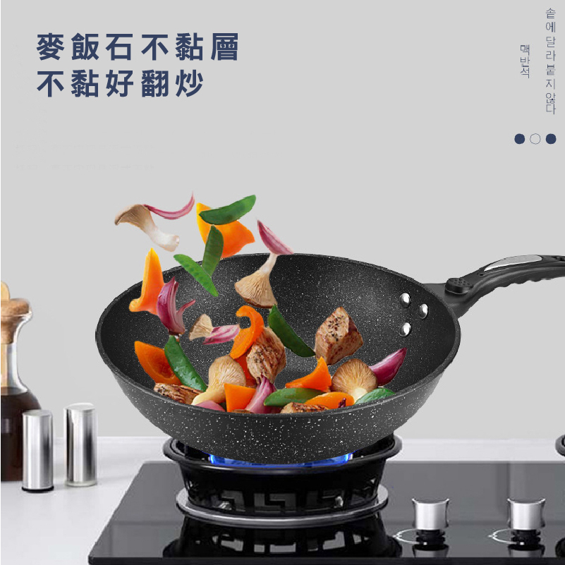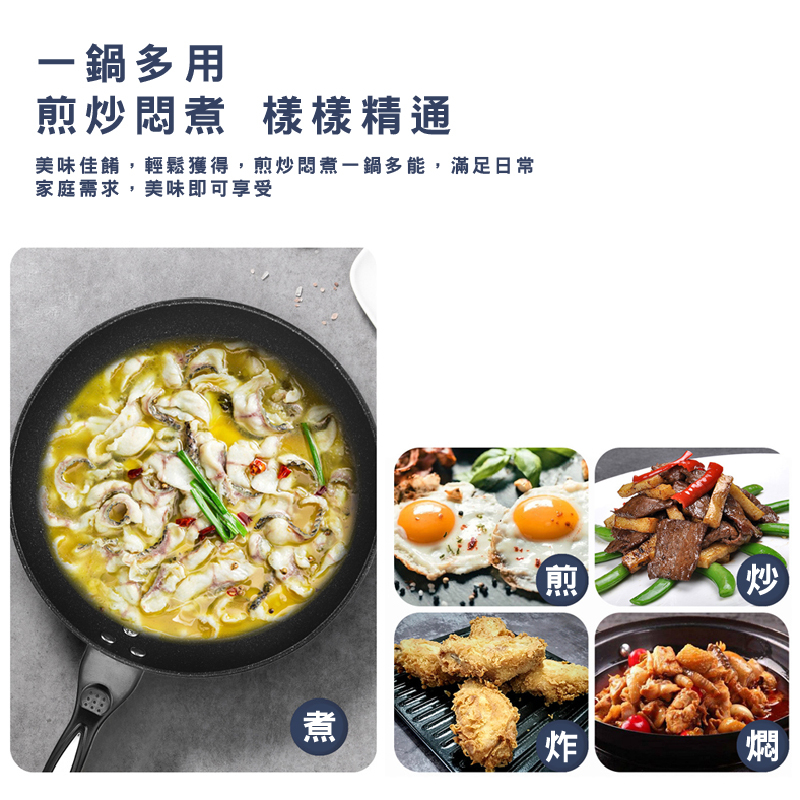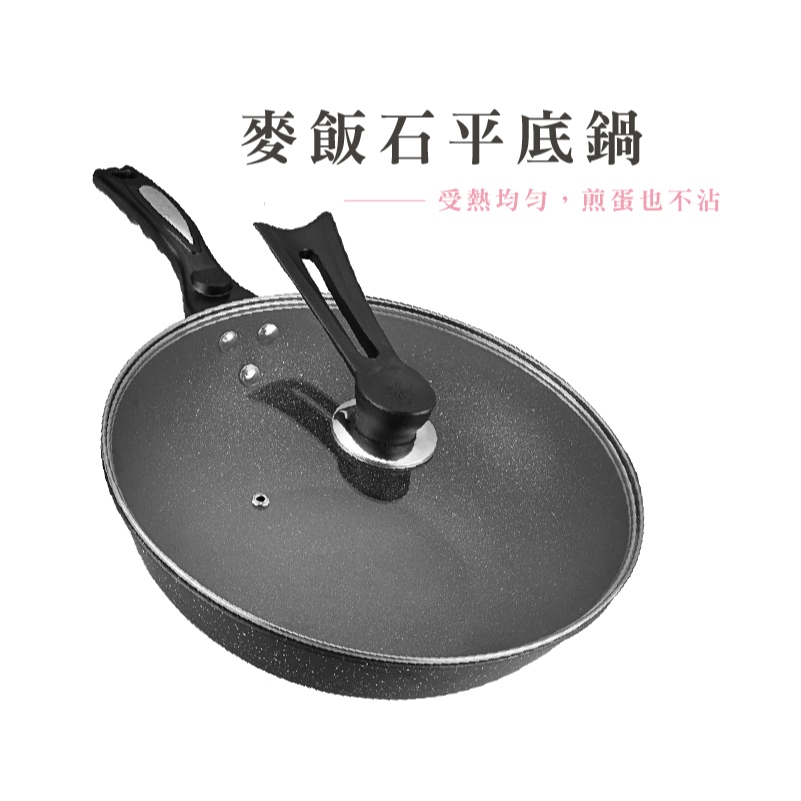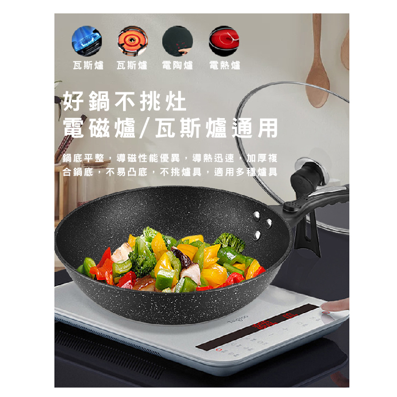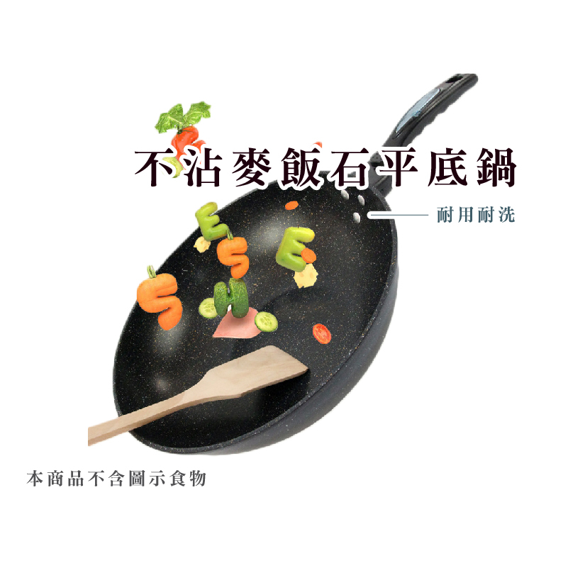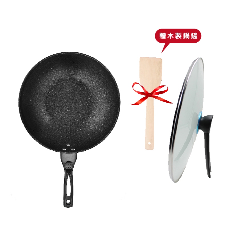 外銷款麥飯石不沾鍋 炒鍋 炒菜鍋 32CM 平底鍋 麥飯石煎鍋 不沾鍋 電磁爐瓦斯爐通用 送木鏟_HA01932cm 麥飯石鍋含蓋 _ 加贈木鏟PansFS生活品專賣