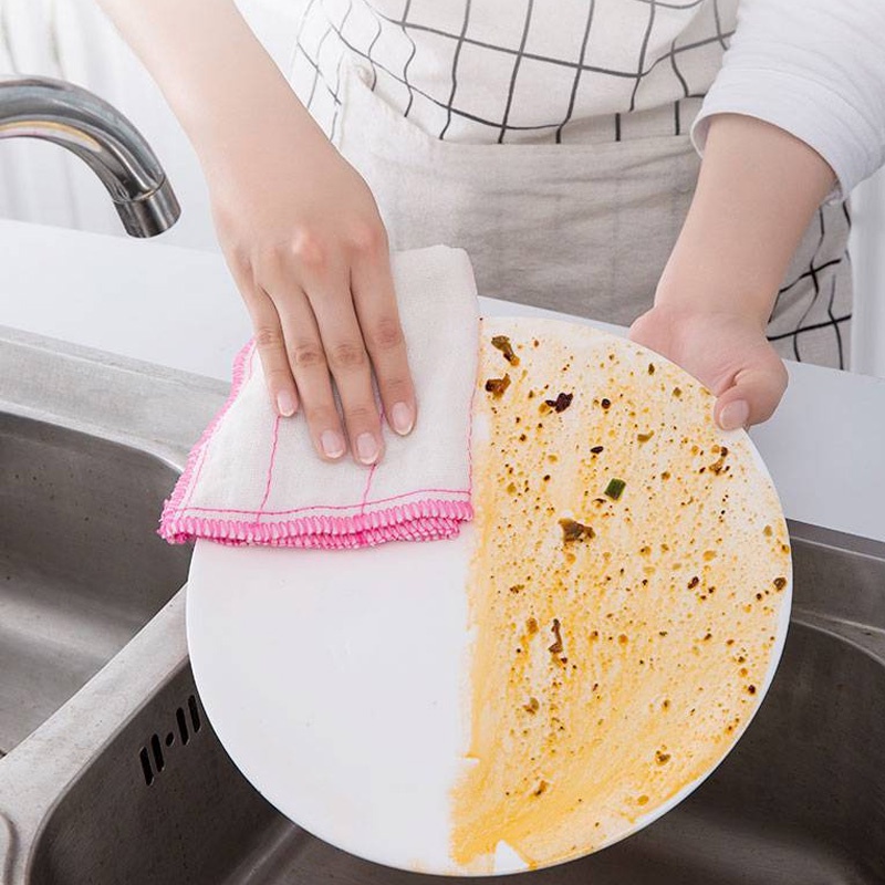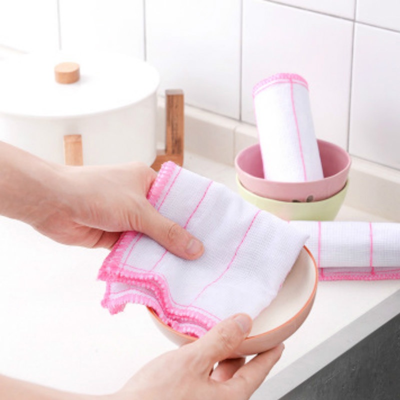 纖維洗碗布 吸水 抹布 擦手巾 毛巾 清潔布 洗碗巾 厨房洗碗布桌布抹布 棉纱洗碗巾【B344】五層粉白26*26cmCleaning ClothsFS生活品專賣