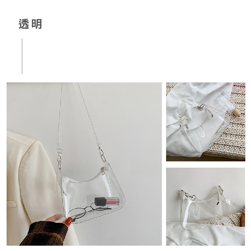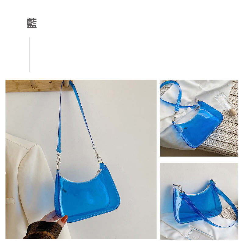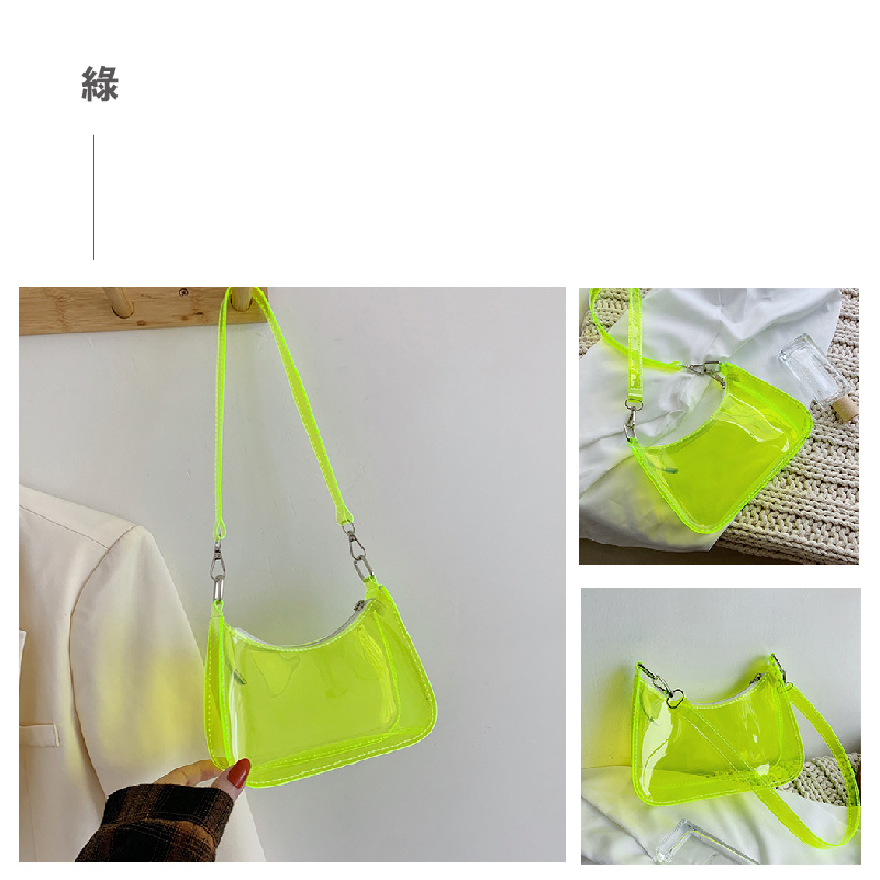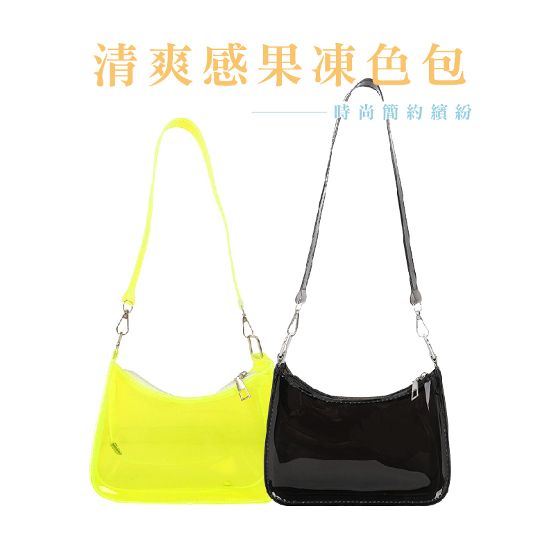 果凍單肩包 時尚半月形手提包 PVC腋下夏季手提包 休閒單肩包 糖果色防水單肩包_BG279螢光綠|透明|藍|黑FS生活品專賣