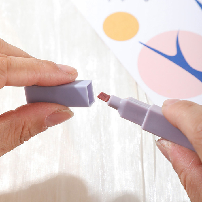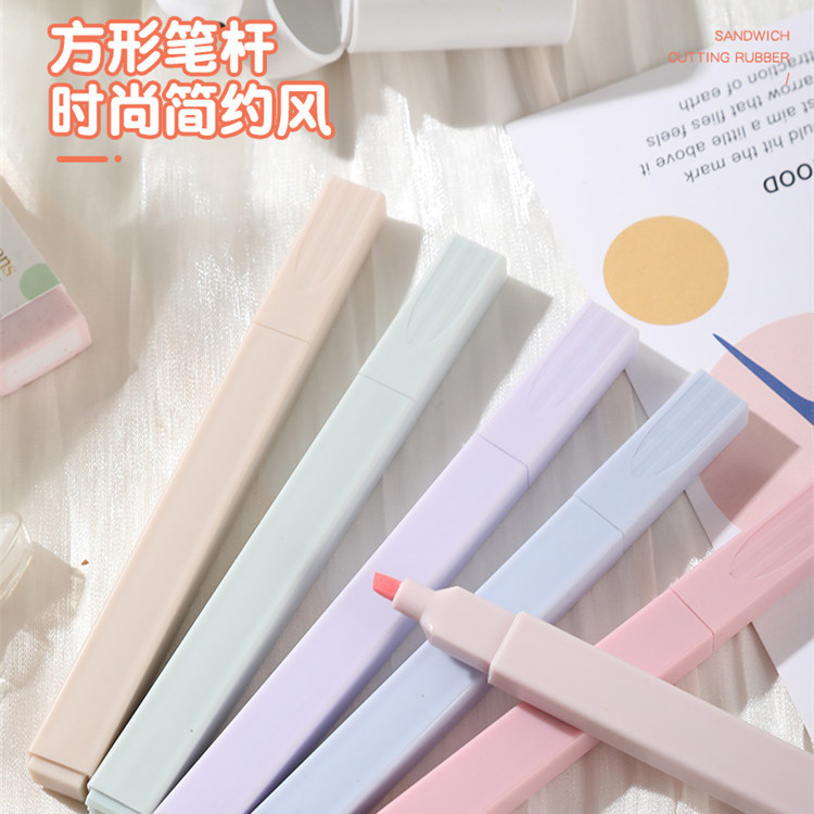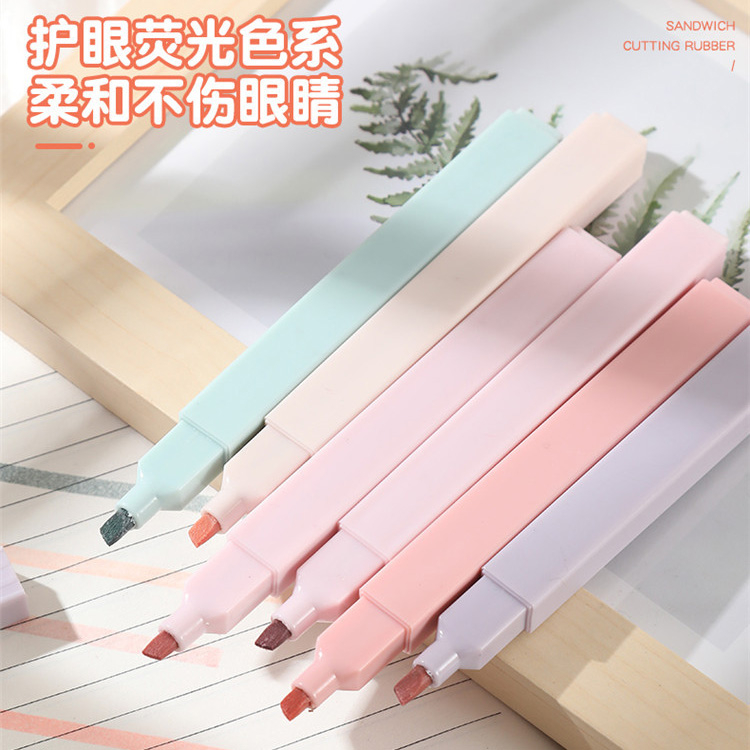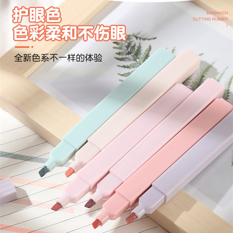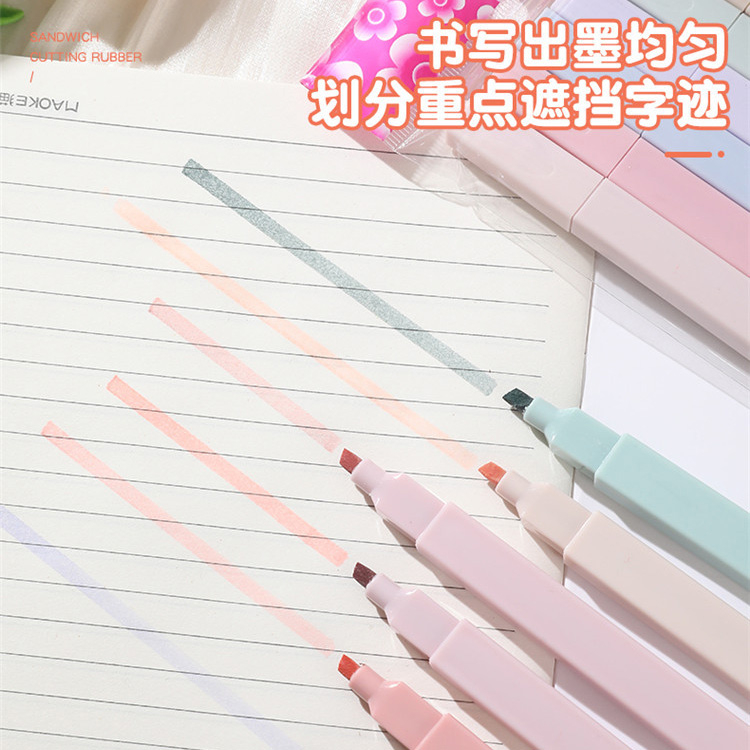 莫蘭迪護眼6色螢光筆護眼 軟頭 莫蘭迪 淡色系 標記筆 彩色筆 繪畫 記號筆 手賬 文具 斜頭螢光筆_B759甜色系6支入(粉袋裝)|鹽色系6支入(藍袋裝)HighlightersFS生活品專賣