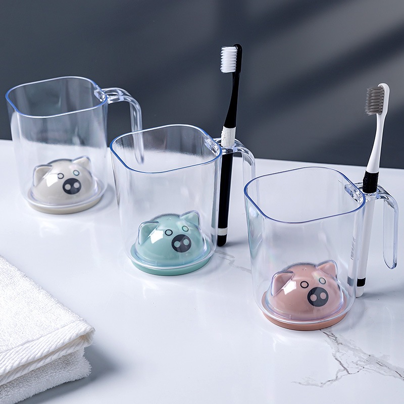 立體豬 可愛 兒童 耐摔 加厚材質 450ML 漱口杯 質感牙刷杯 刷牙杯 收納 衛生用品 帶牙孔_DA116豬豬杯|透明款_可放牙刷|透明漱口杯_無手把|北歐雙色杯|冰裂紋款Toothbrush Holders & Toothpaste DispensersFS生活品專賣