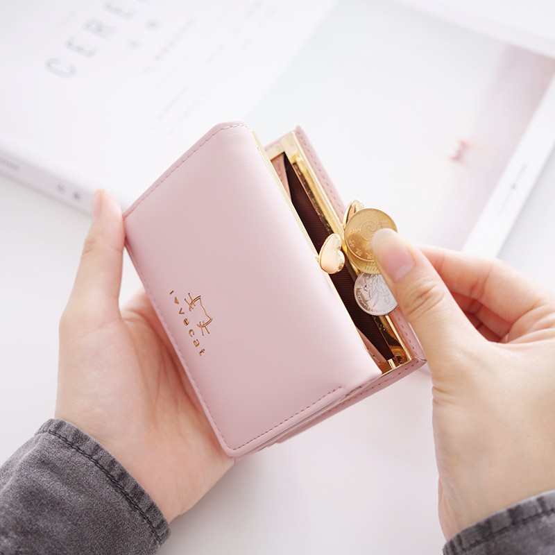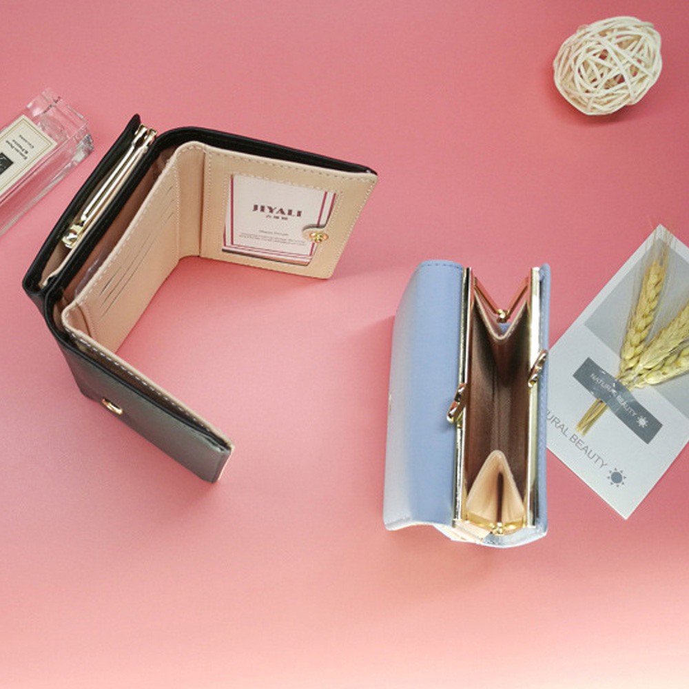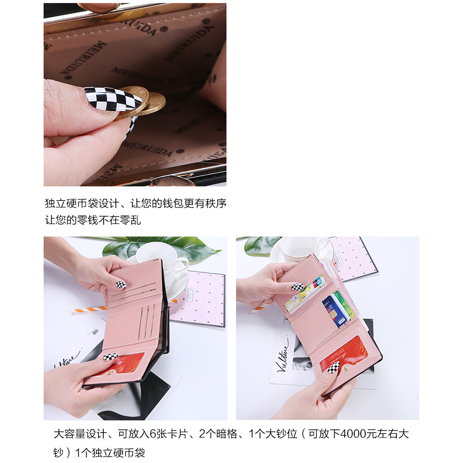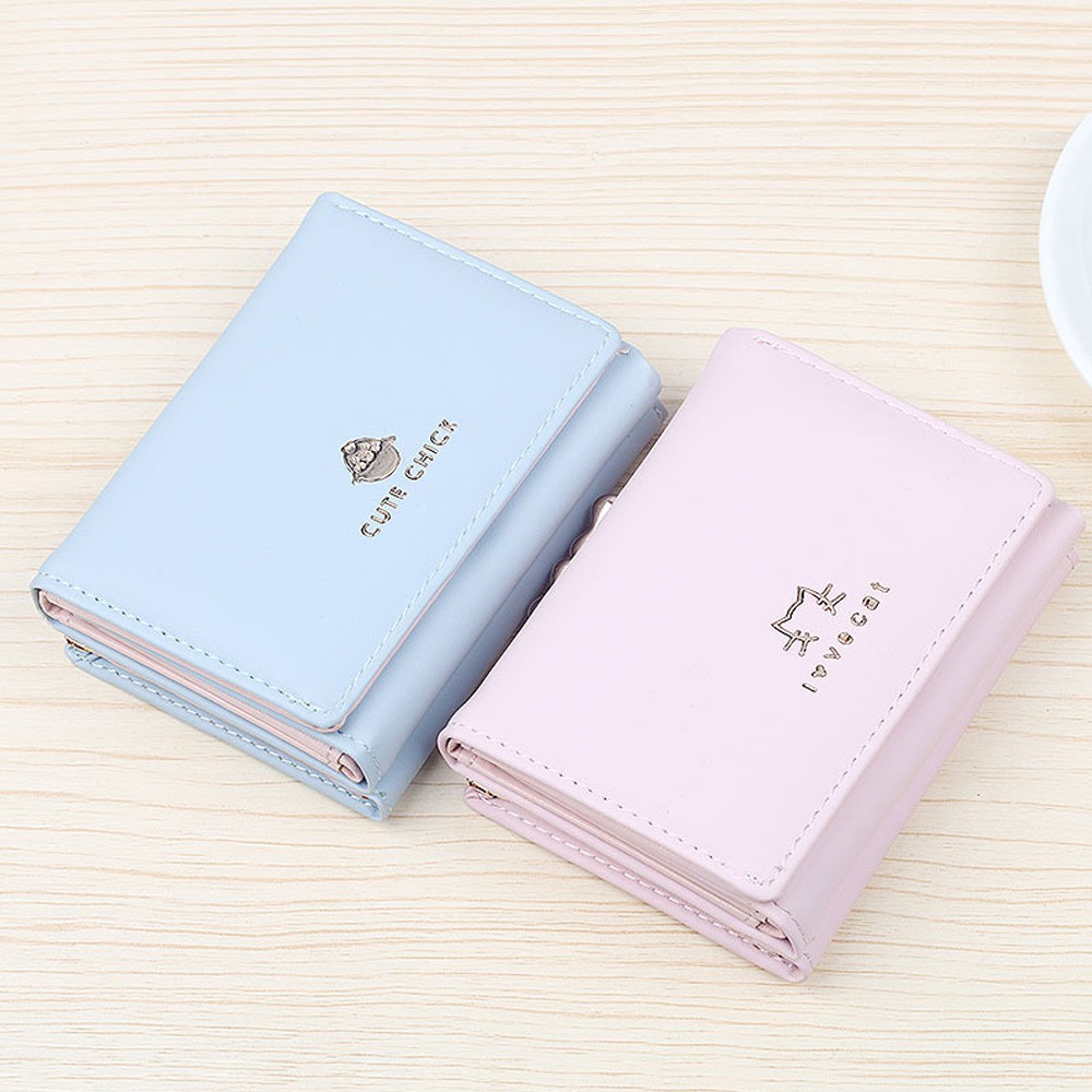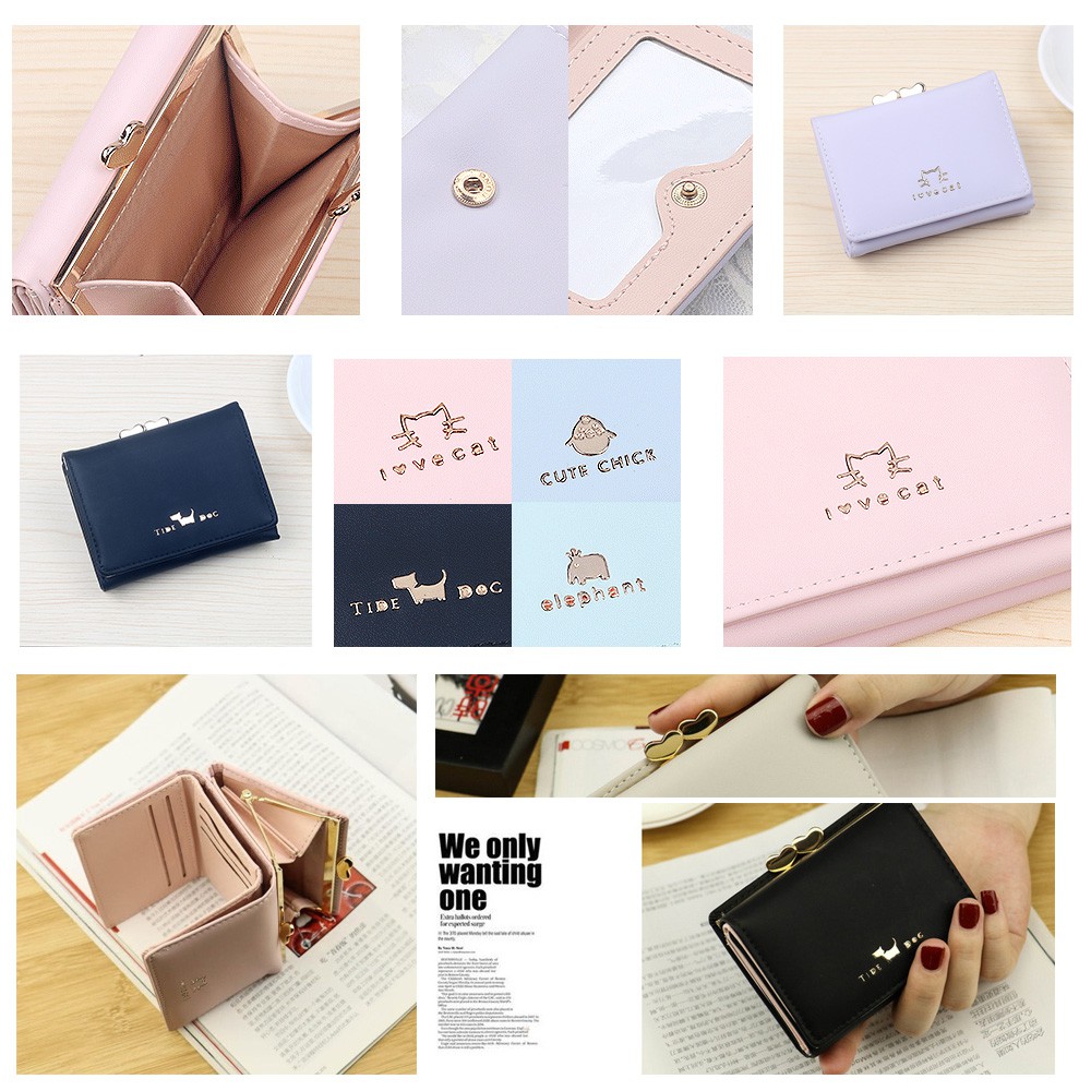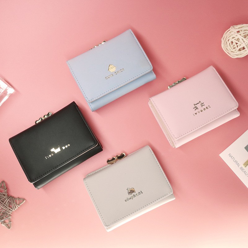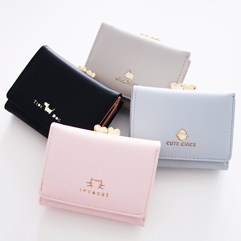新款女士短款錢包 簡約時尚學生皮夾 日韓可愛動物短夾 夾扣三折短夾【BG430】藍_可愛雞|淺灰_大象|紫_貓咪|黑_小狗Bifold & Trifold WalletsFS生活品專賣