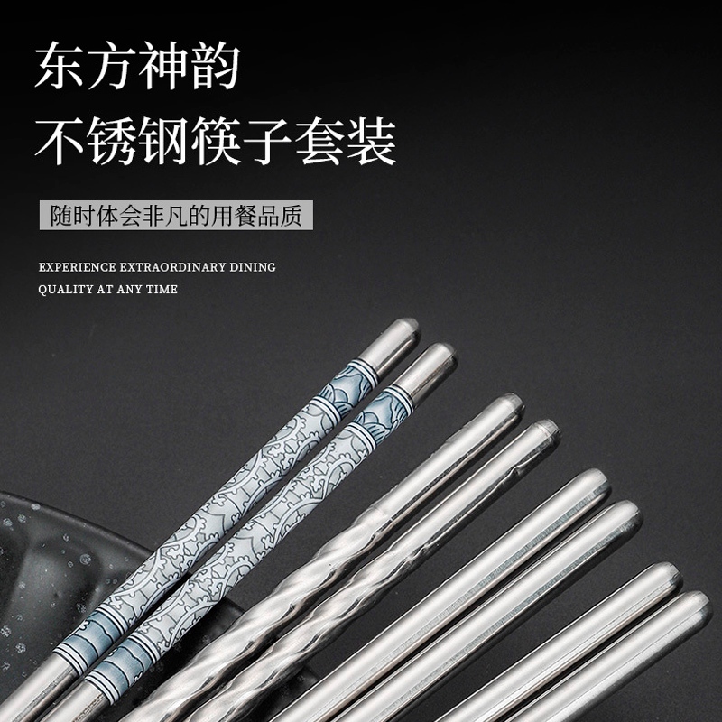 螺紋不鏽鋼筷 不鏽鋼筷子 一雙 螺紋 筷子 螺旋紋 餐具 廚房 金屬筷子 鐵筷 防滑筷子 環保筷_DA007
