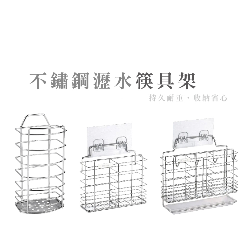 304不銹鋼筷子筒 壁掛式筷子簍 家用 廚房瀝水架 廚房置物架 筷子籠 筷子收納盒 廚房壁掛式收納_DH008304筷籠_半圓單格|304筷籠_二格 |304筷籠_三格帶勾Kitchen RacksFS生活品專賣