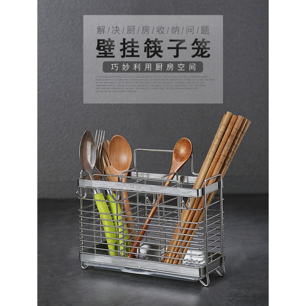 304不銹鋼筷子筒 壁掛式筷子簍 家用 廚房瀝水架 廚房置物架 筷子籠 筷子收納盒 廚房壁掛式收納_DH008