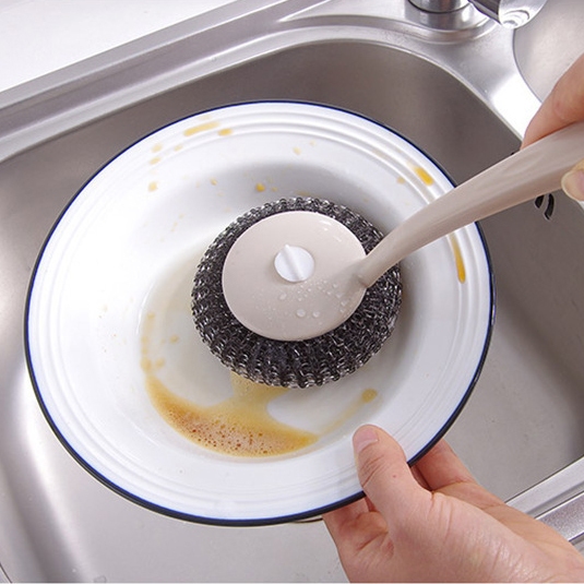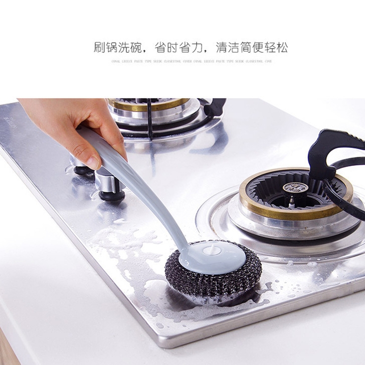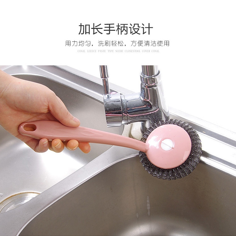 鋼絲球刷 日式 帶柄鋼絲球刷 不鏽鋼清潔球刷 不鏽鋼刷 洗鍋刷 鋼絲球【B390】長柄鋼球刷Cleaning BrushesFS生活品專賣