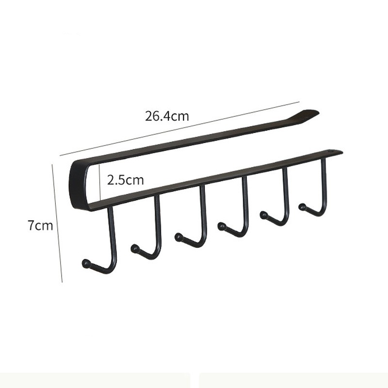 櫥櫃收納掛架 多功能衣櫃排鉤 懸掛 6連掛鉤 無痕免釘掛鉤 杯架 廚房掛勾 餐具收納架 大號 櫥櫃隔板下掛籃_HA044