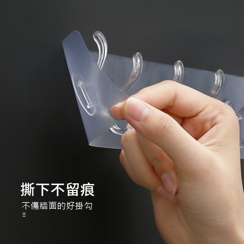 創意無痕粘膠掛勾 六連勾 透明衣帽鉤六連勾 免釘孔掛勾 承重強掛勾【DA096】透明6連排HooksFS生活品專賣