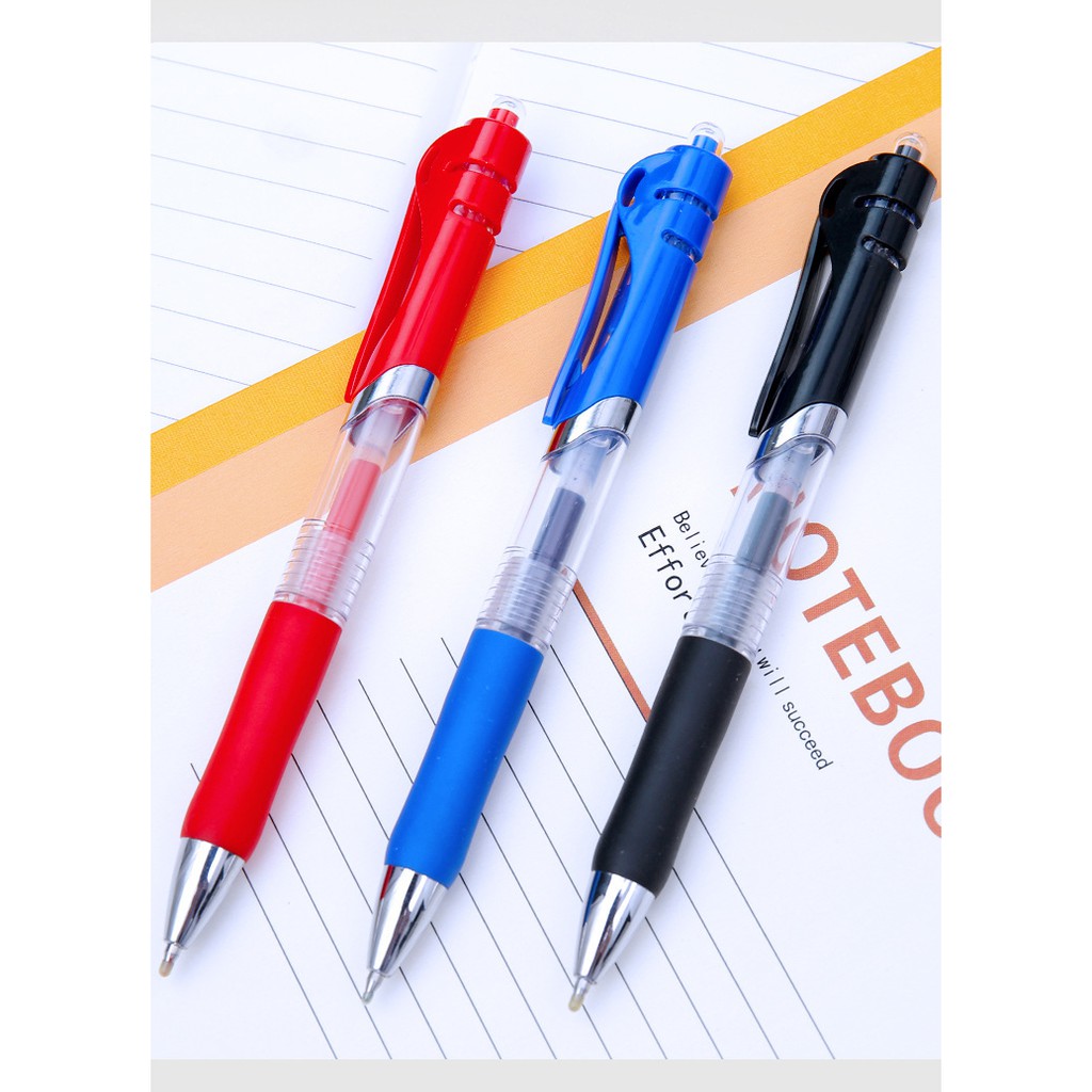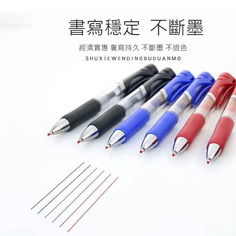 0.5按壓式中性筆 大容量自動中性筆 書寫專用 原子筆 辦公室文具 學生文具【B735】紅|藍|黑|黑(筆頭半透明)|藍(筆頭半透明)Pens & InksFS生活品專賣