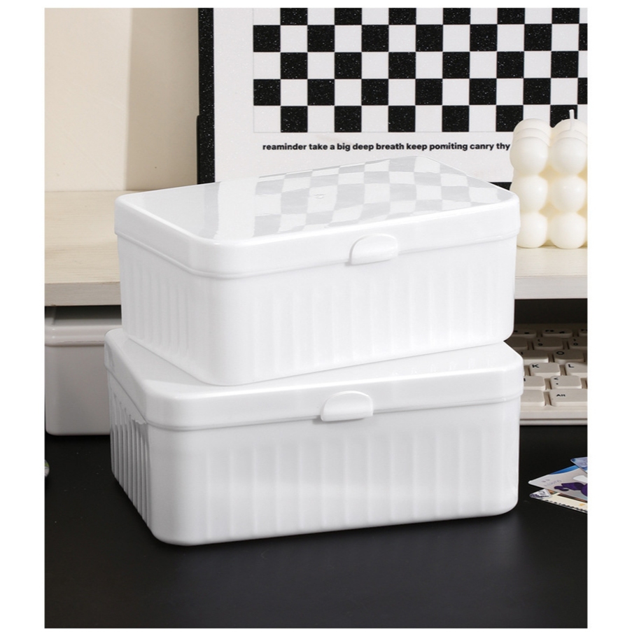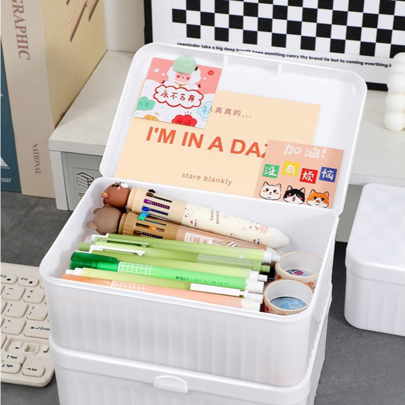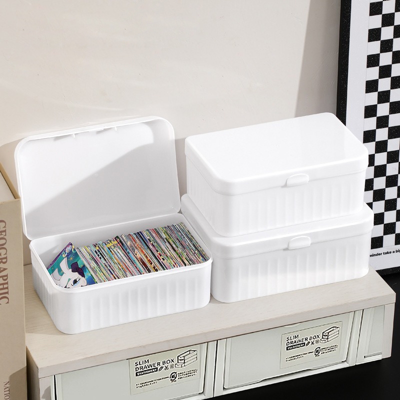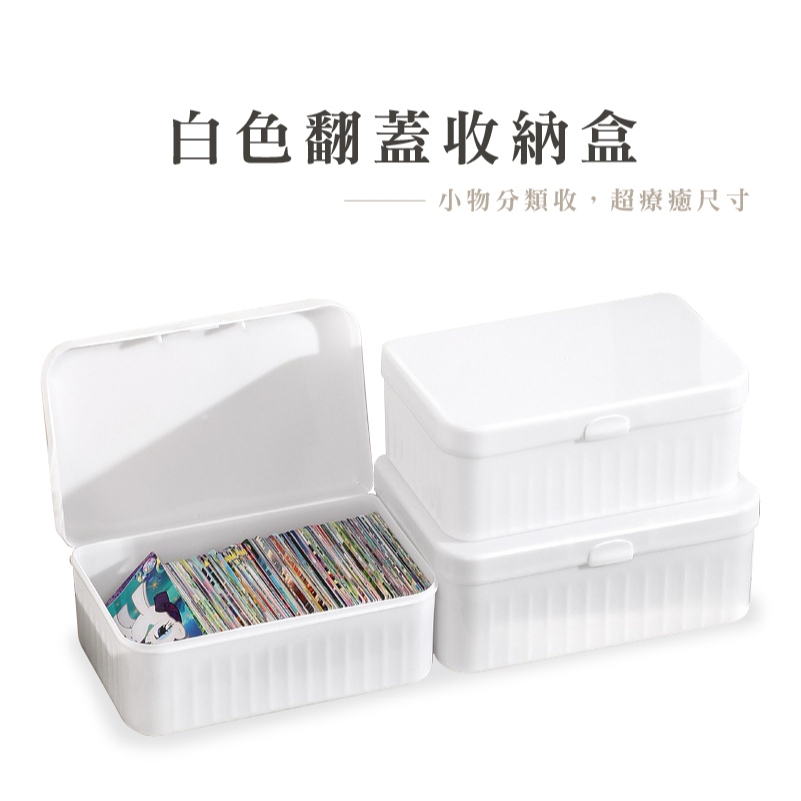 白色翻蓋收納盒 桌面小物整理盒 小型收納箱 文具化妝品盒 PP塑膠盒 整理箱 桌面翻蓋收納盒_DH049白色收納盒_小|白色收納盒_中|白色收納盒_大Desk OrganizersFS生活品專賣