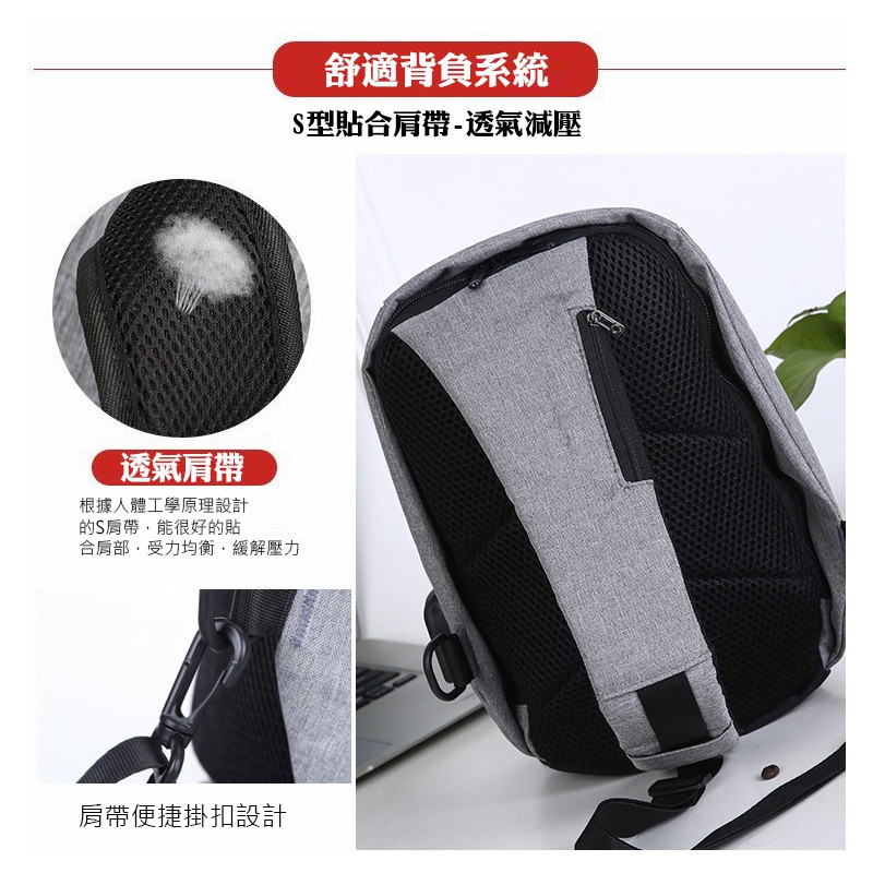強功能 大容量 胸包 防潑水 防盜 USB充電單肩包 背包 側背包 斜背包 流行 單肩包女【BF514】天藍|粉|灰FS生活品專賣