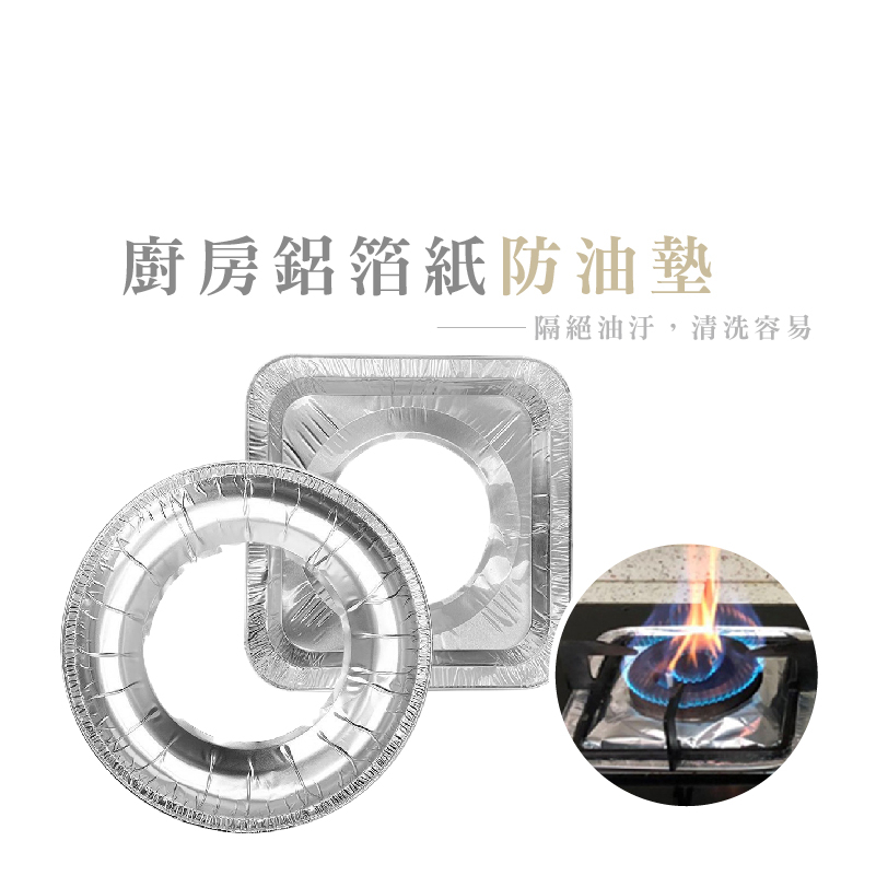瓦斯爐防油漬錫紙10片裝 煤氣爐灶鋁箔紙 防油墊 瓦斯爐防油紙 耐高溫 鋁箔紙 瓦斯爐灶墊 防油墊_DH092圓形款(10片入)|方形款(10片入)Aluminium FoilFS生活品專賣
