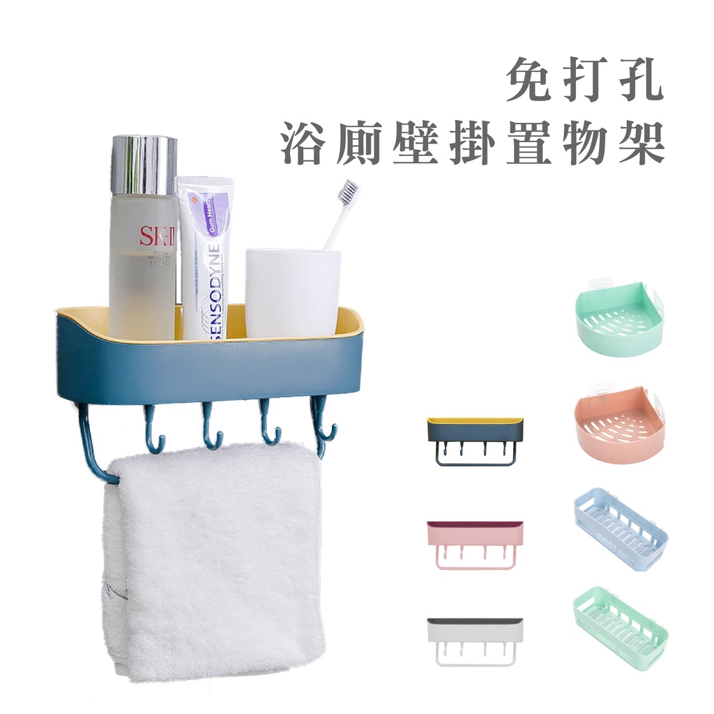 【B334】強力多功能壁掛架免打孔廁所浴室壁掛置物架三角精簡型-粉|三角精簡型-藍|長方形精簡型-粉|長方形精簡型-綠|長方形精簡型-藍|三角精簡型-白灰|三角精簡型-灰|長方形精簡型-白灰Bathroom Racks & CabinetsFS生活品專賣