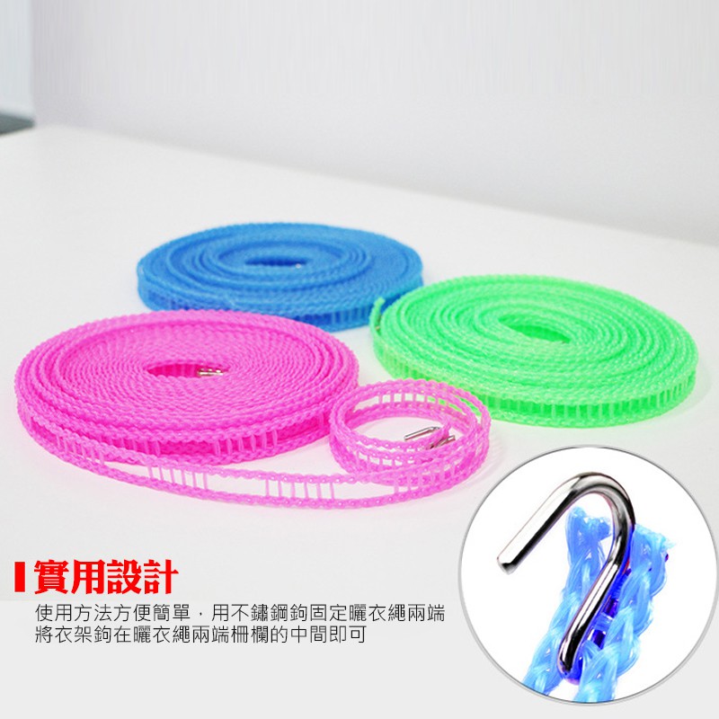 防滑防風晾衣繩 曬衣繩 曬衣繩 防滑 防風 晾衣繩 掛衣繩 晾曬 繩子 掛鈎 柵欄式 加粗【B381】防風(3米)|防風(5米)Clotheslines & Drying RacksFS生活品專賣