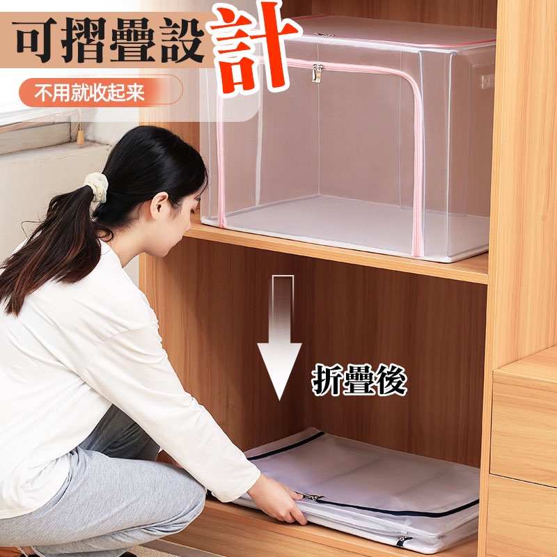24L/66L 日系透明可折疊鋼架收納箱 棉被收納框 尼龍防水整理箱 收納箱 衣服被子收納整理儲物箱 雙開式_DH09066L-PVC網格(顏色隨機)|24L-PVC網格(顏色隨機)|66升-藏青布面圓點|66升-灰色布面|24L-藍圓點布面|24L-粉色幸運草布面Storage Boxes, Bags & BasketsFS生活品專賣