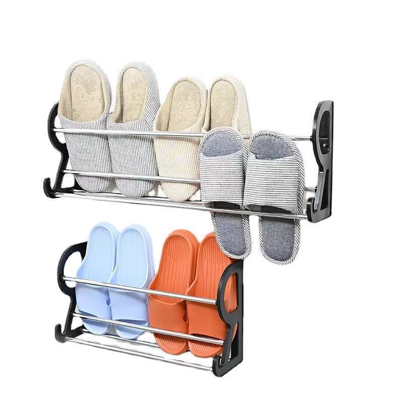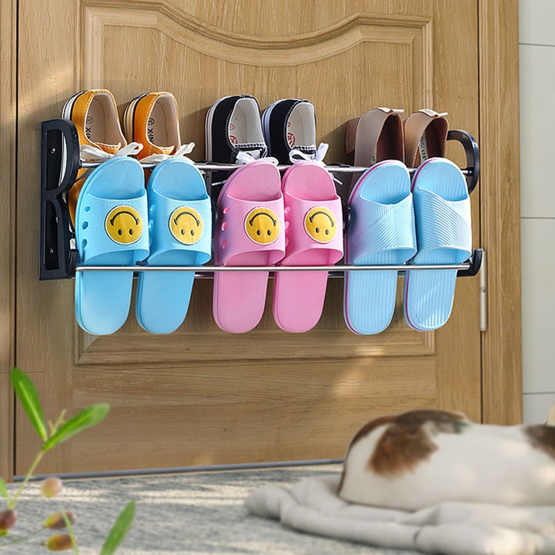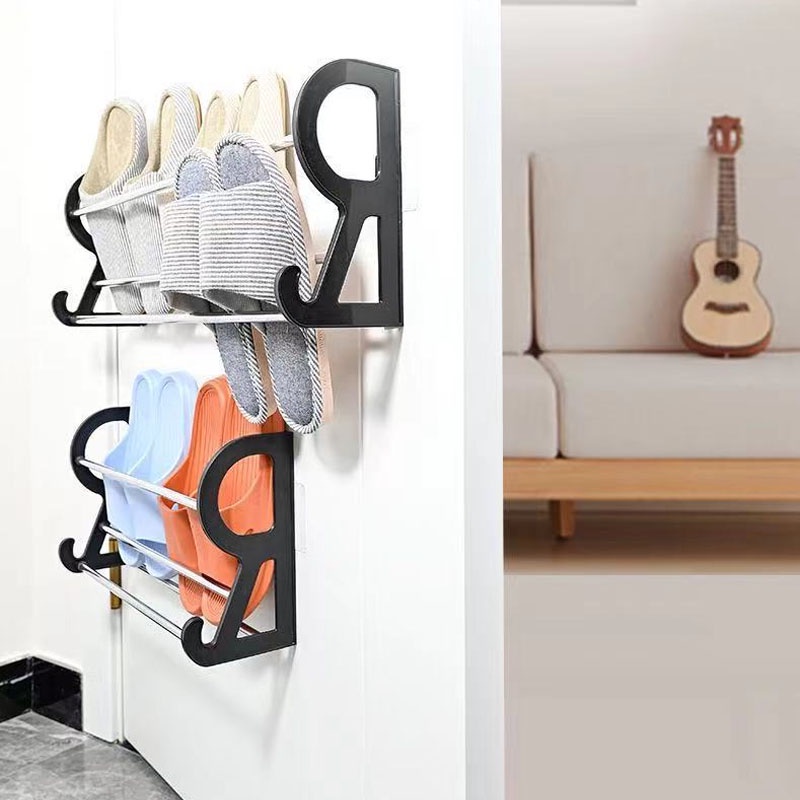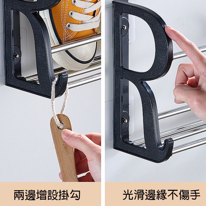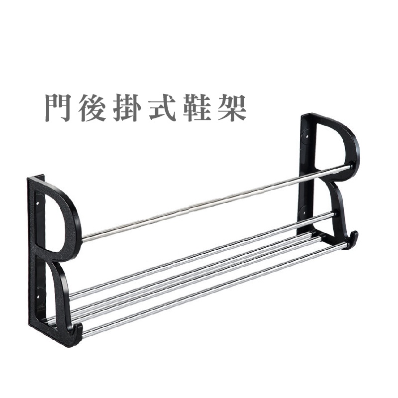 台灣現貨 門後掛式鞋架 掛式免打孔鞋架 鞋子收納神器 浴室衛生間拖鞋架 免釘免打孔鞋架 壁掛鞋架 門後鞋架【DH050】30CM 雙層鞋架 白|30CM 雙層鞋架 黑|60CM 雙層鞋架 黑HooksFS生活品專賣