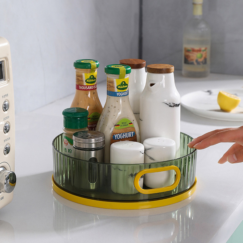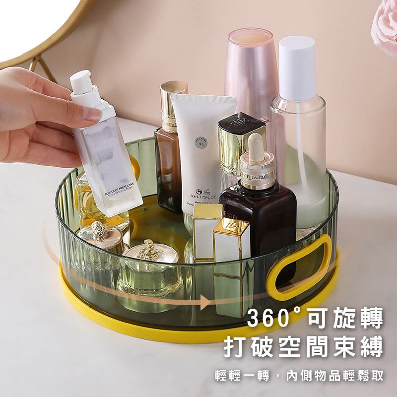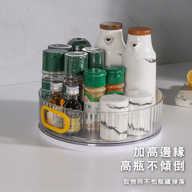 旋轉收納盤 多功能收納旋轉盤 360度旋轉 調味料收納架 整理收納盒 化妝品收納架_DH044大號_旋轉調料架(透明)|旋轉調料盒_米色_|旋轉調料盒(透明)Desk OrganizersFS生活品專賣