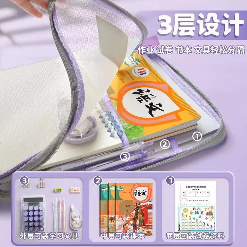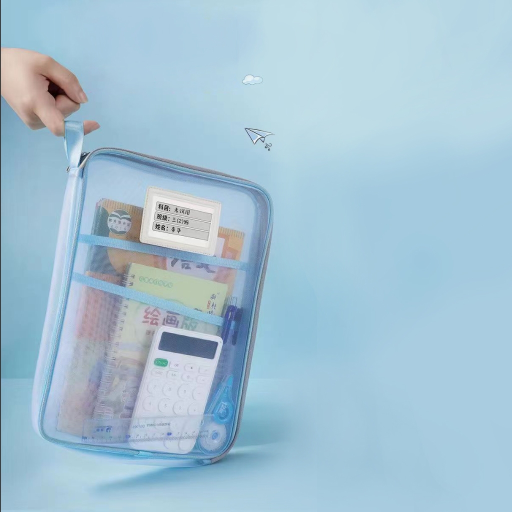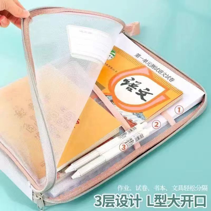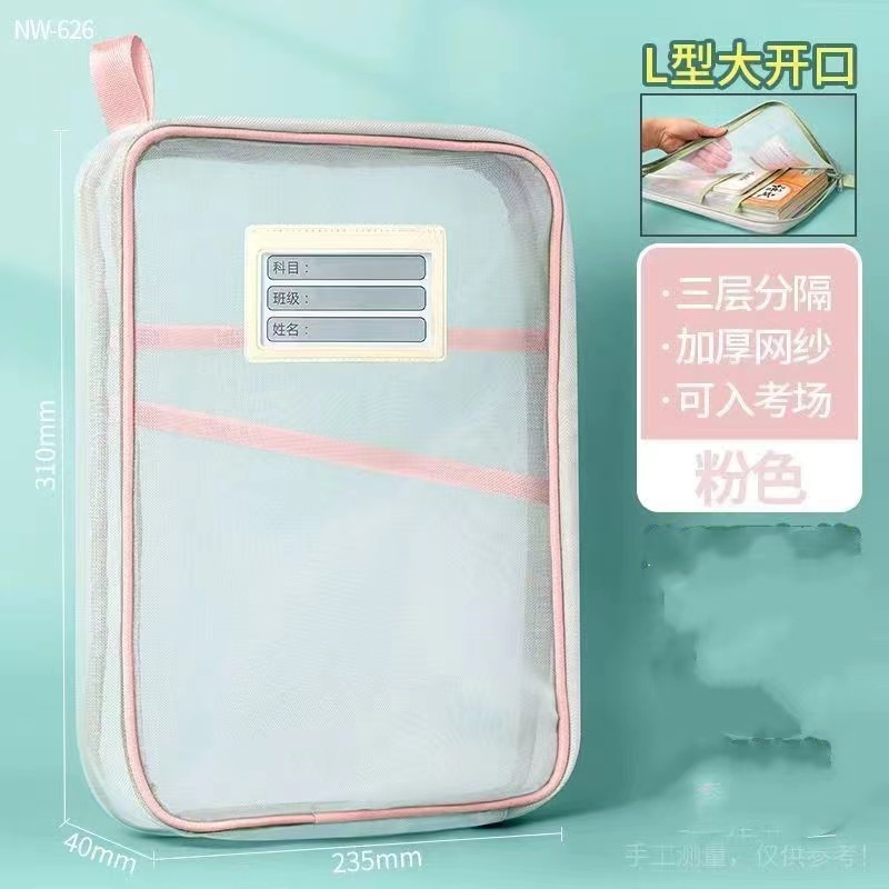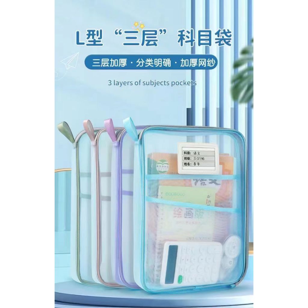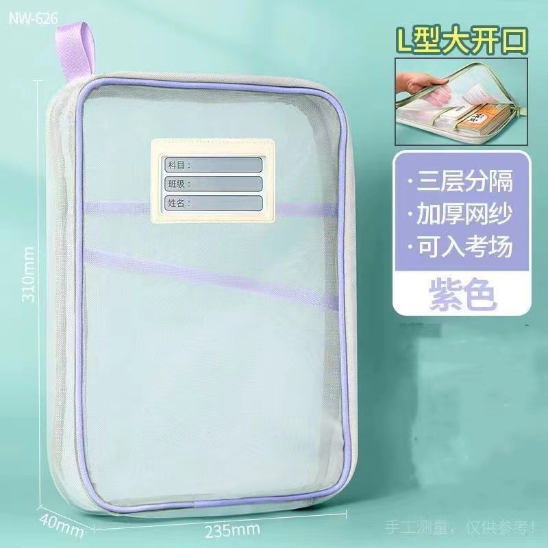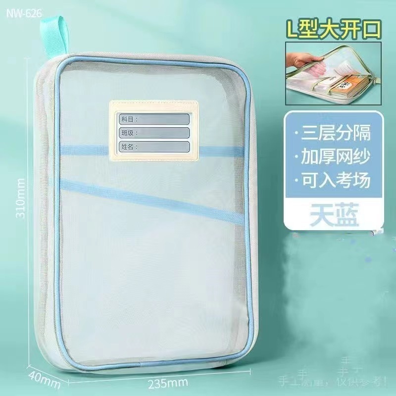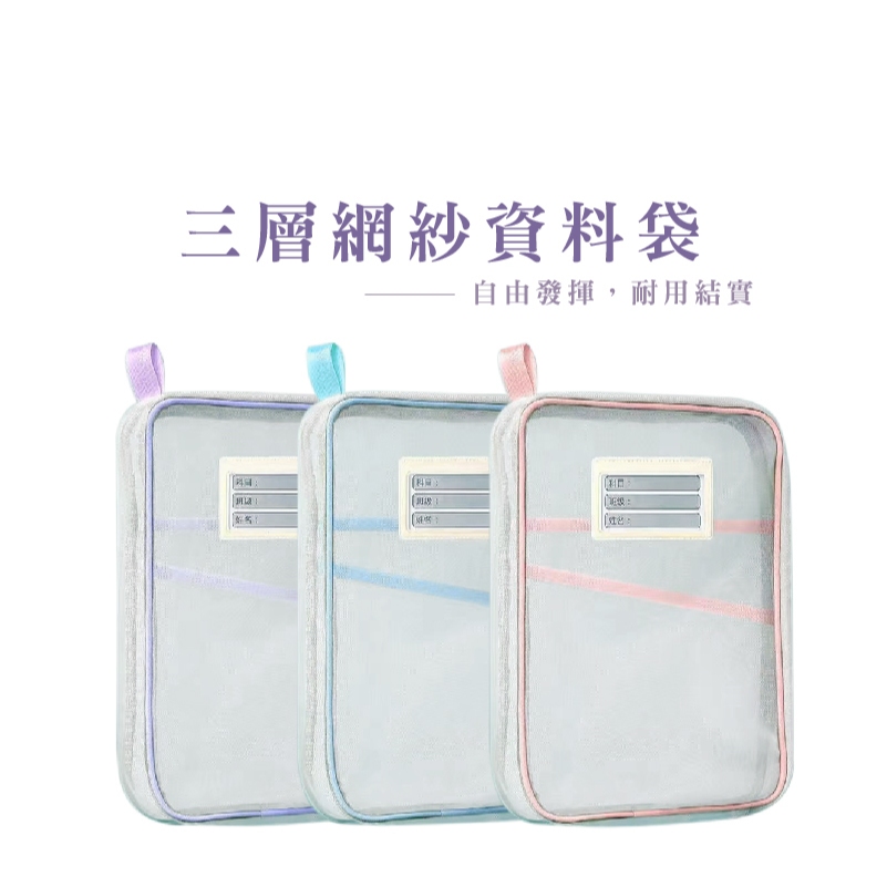 L型網紗文件袋 文件夾 收納文件袋 透明網紗 加厚大容量 三層雙拉鍊 學科袋 資料袋 分類網紗袋_B787A4網紗款_藍|A4網紗款_粉/紫隨機Folders, Paper Organizers & AccessoriesFS生活品專賣