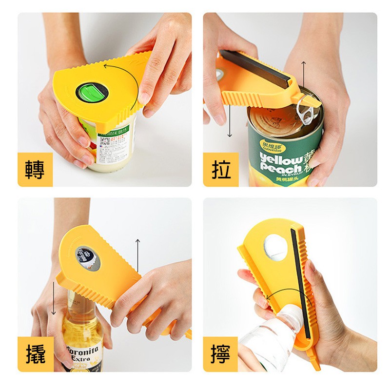 開罐器 多功能開罐器 輕鬆開瓶器 省力開罐器 四合一開罐器 創意橡膠開罐器 廚房好物【DA061】三角開罐器_黃|開罐器_小號(7cm)|開罐器_大號(8.5cm)Can & Bottle OpenersFS生活品專賣