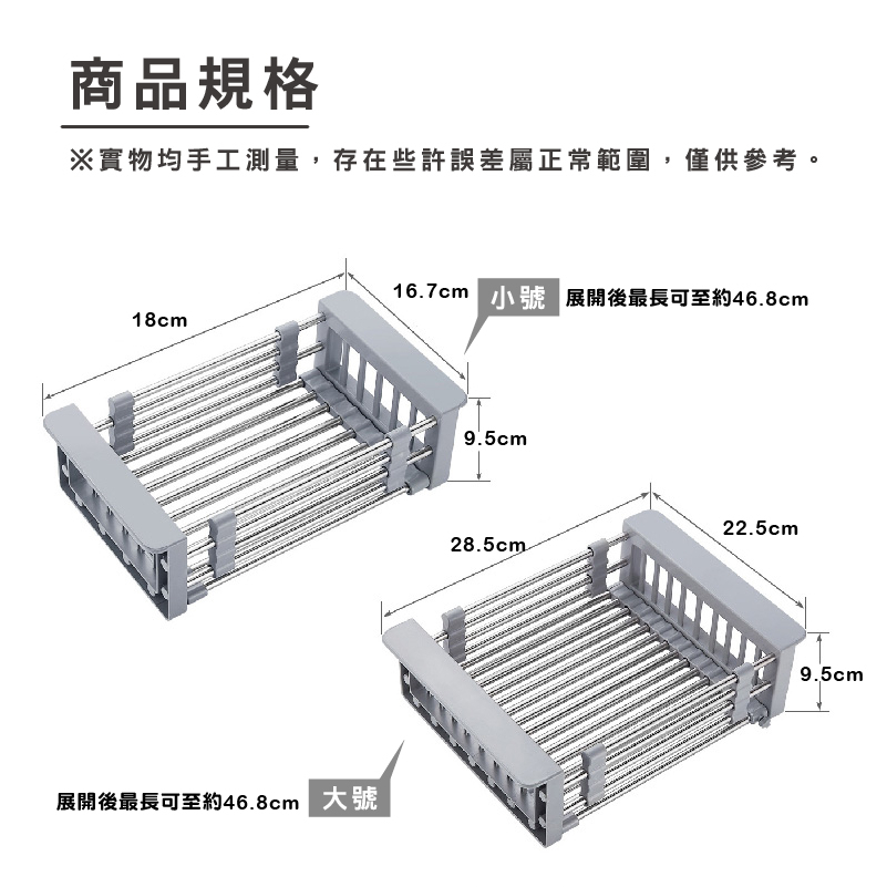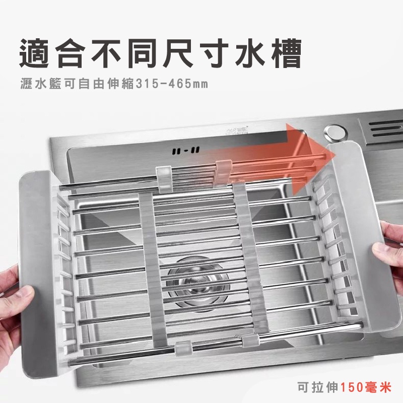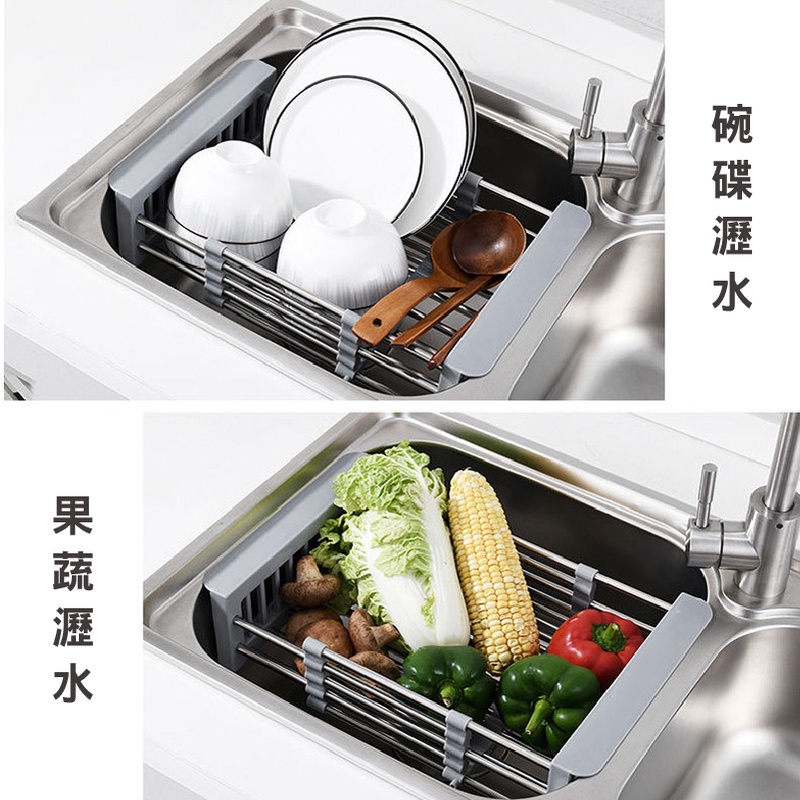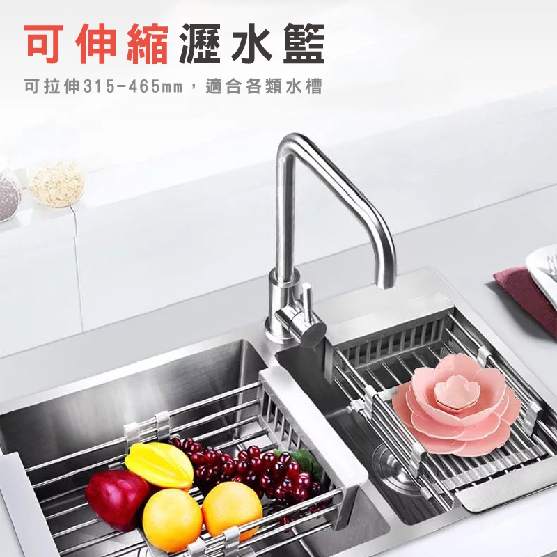 不鏽鋼瀝水架 可調節不鏽鋼伸縮瀝水架 不鏽鋼瀝水 瀝水架 瀝水籃 水槽 瀝水 洗菜 水槽置物架 水槽瀝水架_DH071不鏽鋼伸縮瀝水籃_大|不鏽鋼伸縮瀝水籃_小Kitchen RacksFS生活品專賣