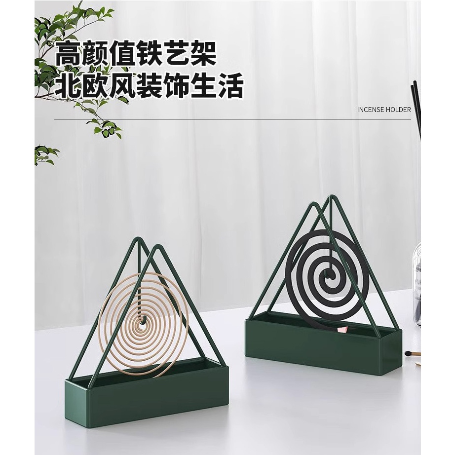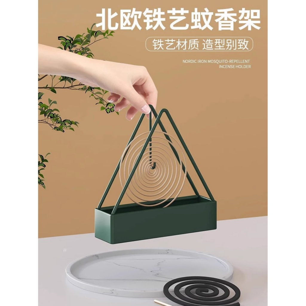 三角蚊香架 懸掛式蚊香 鐵製蚊香架 防蚊 蚊香接灰盤 懸掛蚊香架 香灰不落地 香盤_DH166三角形蚊香架(黑/綠隨機出貨)|鳥籠蚊香_黑色_|鳥籠蚊香_金色_Pest & Weed ControlFS生活品專賣
